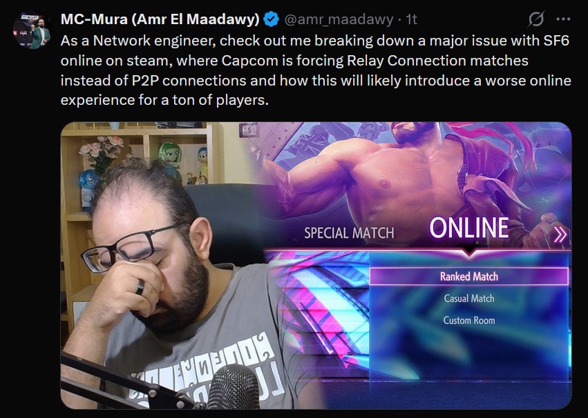 I see a video clip from Mura about how SF6's online has some new kink in its online programming but I don't want to hear his voice and find out why.