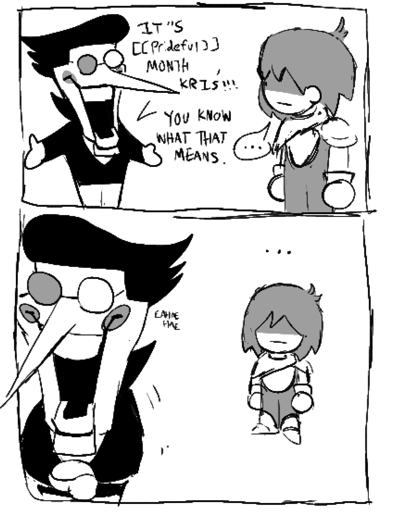 Deltarune would be better if Kris and Ralsei had their meager bulges on display and characters commented on them frequently.