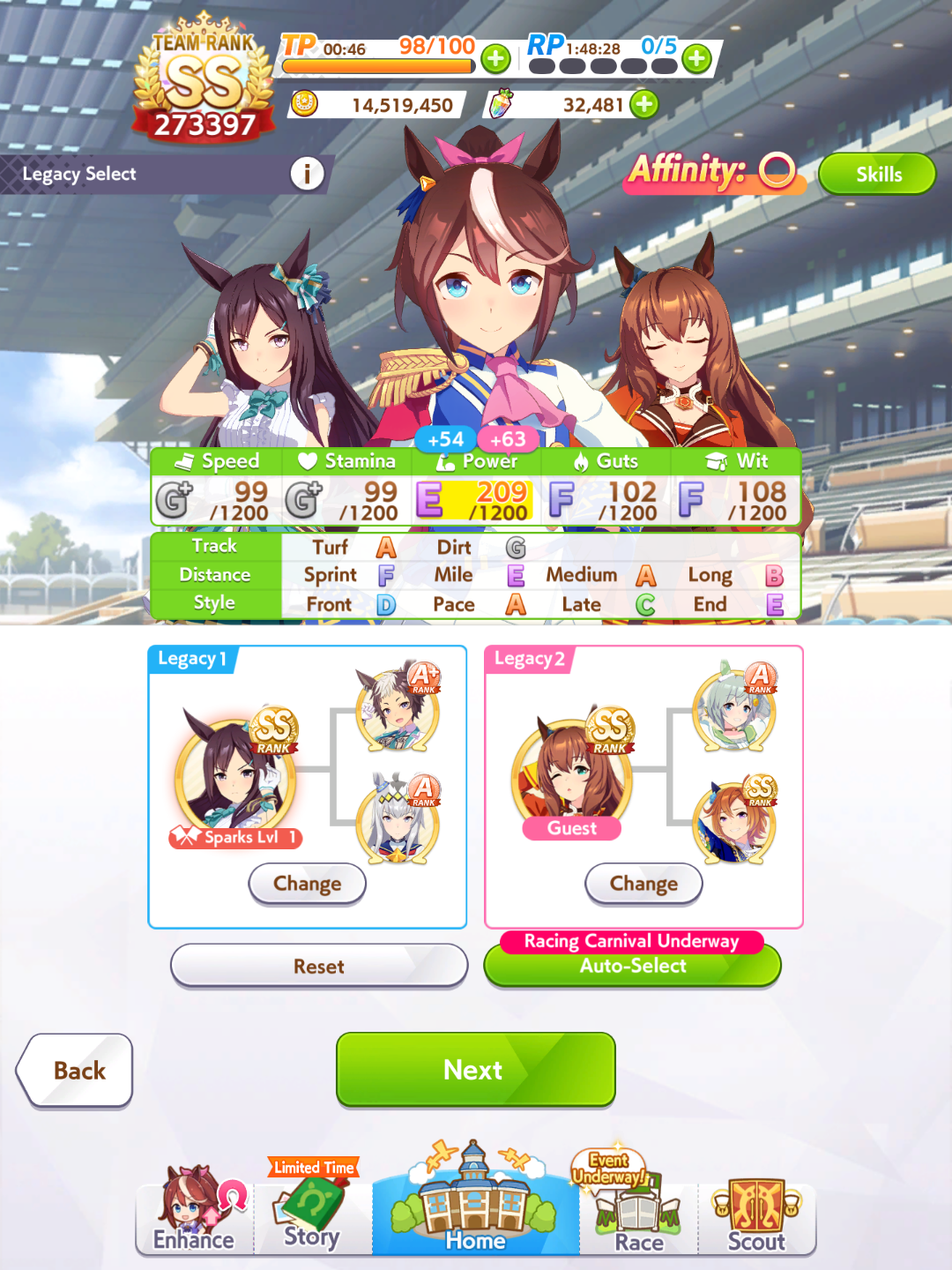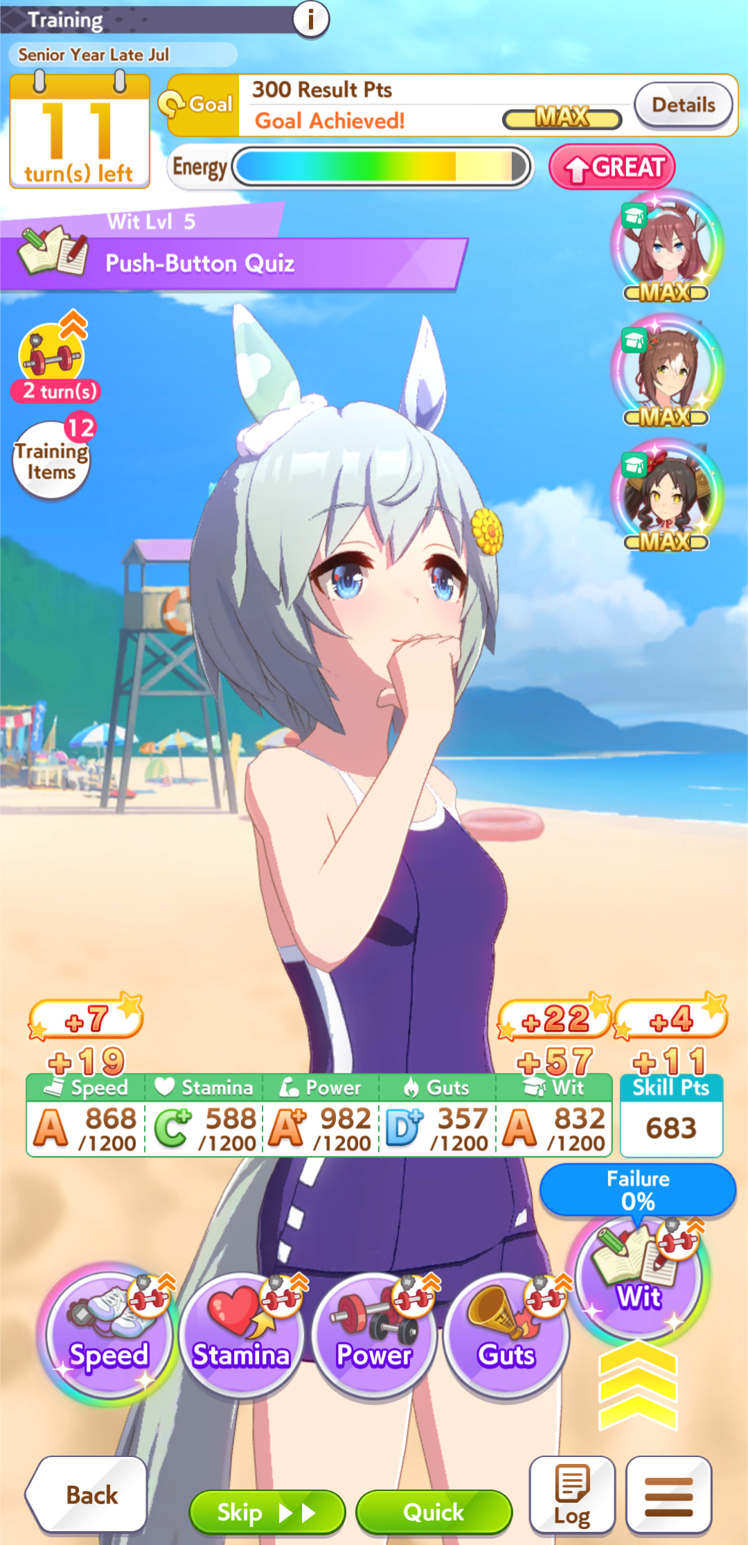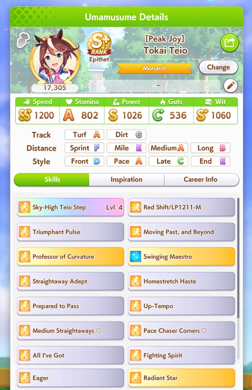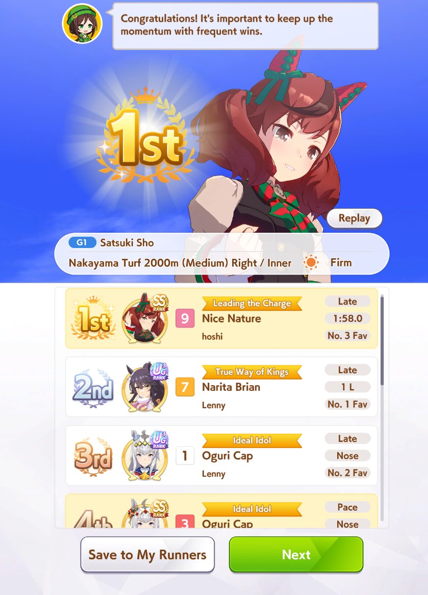 >>563782017your ace winning a lot is fine but getting points is quicker, your medium TT uma would do a better job because she would have more skills and stuff