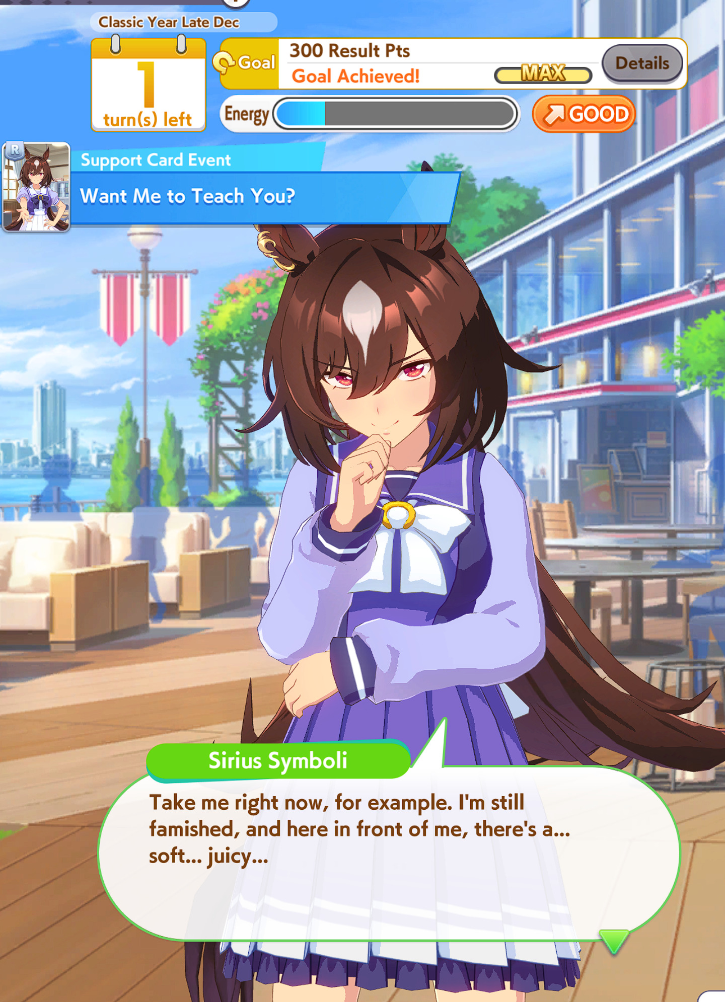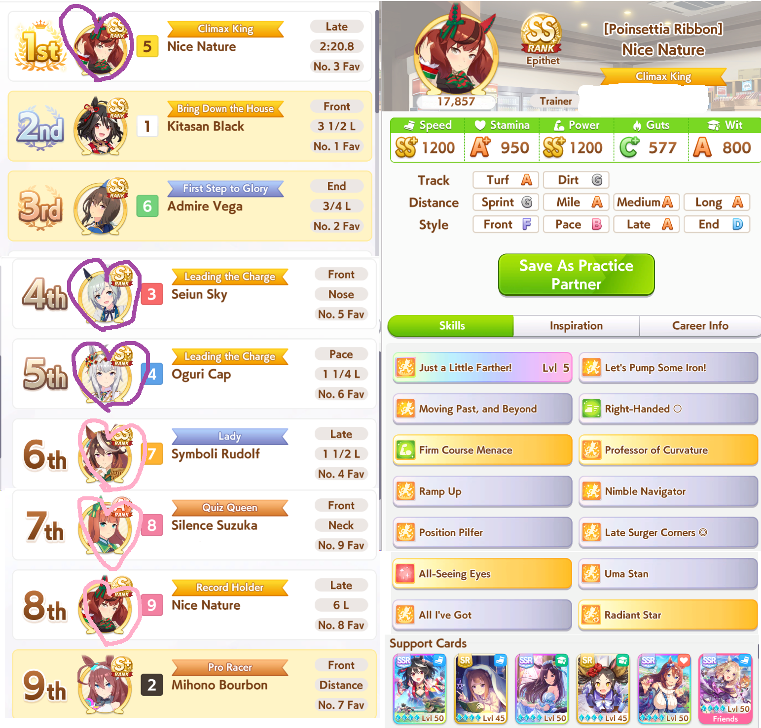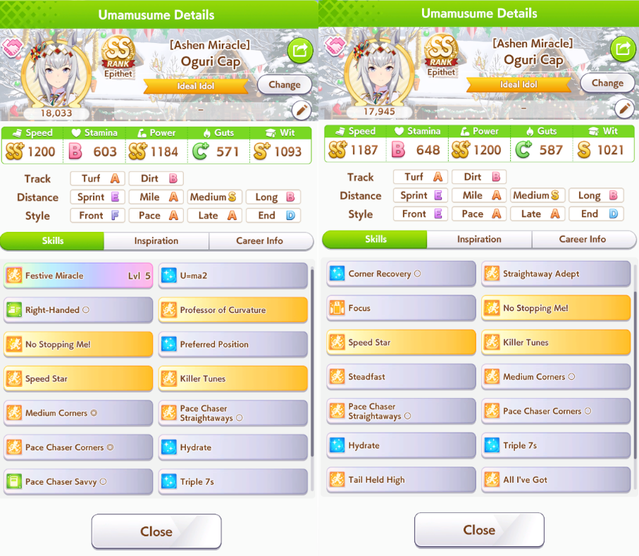 >>563803480i feel like this is a "dropped your smug oguri" post but i've watched 570 stam + 2 white recoveries beat my umas in a 2500m tt race so who knows. stamina is a meme