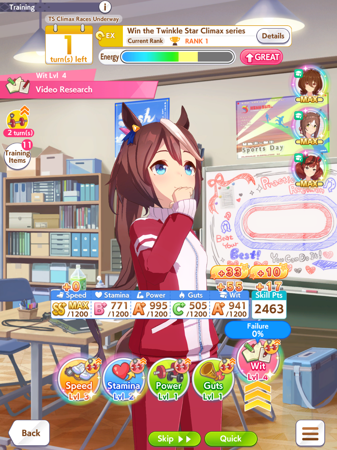 >>563799321Probably not the answer you want to hear, but you just gotta do more runs and pay attention to what you're doing and what's working and what isn't; the hardest part is balancing races and actually training. I was getting URA tier umas in my first few runs before fixing my mistakes.Remember some runs will just be fucked due to what items you get, for example if the game gives you no energy pots/kale juice, you're just gonna be racing and resting a lot and the run will just be terrible. Even then you could just try and turn that uma into a parent