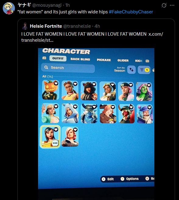 >>563789175what's the point of jiggle physics if our characters are always facing forward during gameplay? you guys don't just spend hours in the locker tab making female skins do emotes, do you?