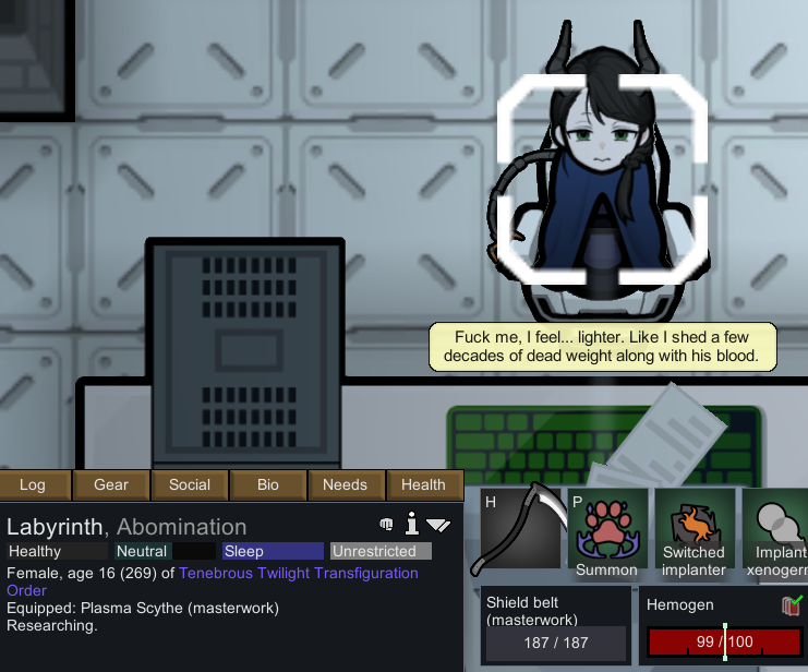 >>563946397>>563946290well i captured her, planning to recruit.she has some sort of, get cummed inside need like vampires have blood. i'm not sure if it's going to be worth playing with, but having a succubus around sounds fun.