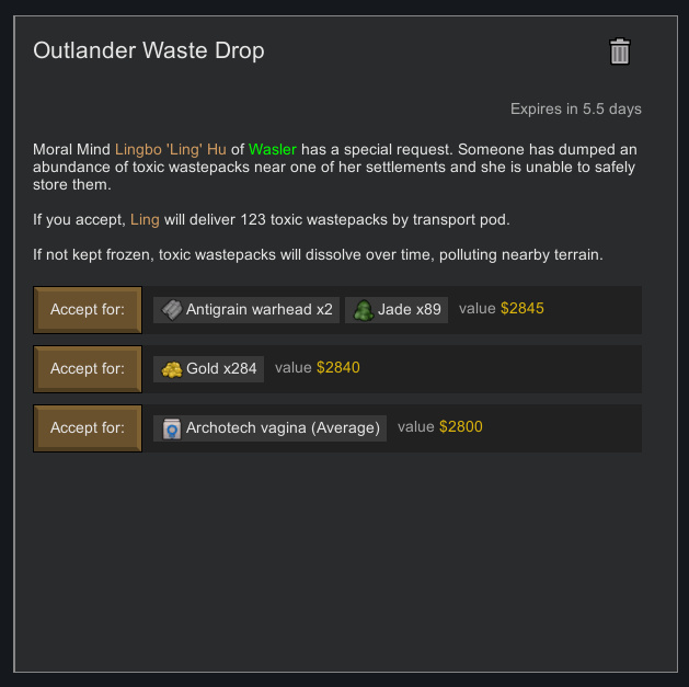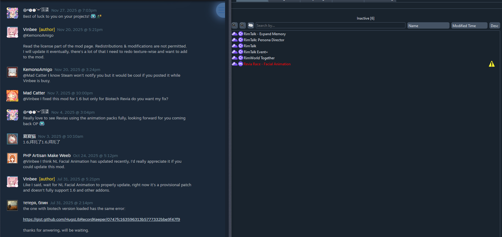 confessions inside edition>Is the DLC worth it?Some like it and some don't. You should probably pirate it first to try it out and then buy it. (I did)>Is the Book worth it?No.>Is Dwarf Fortress welcome here?Absolutely not.>What mods for performance?Performance Optimizer and Slower Pawn Tick Rate.► Links:--------------------------------------------->Where can I buy Tynan's "amazing" book?https://amazon.com/gp/product/1449337937>Where to get the game if you want to try it first:https://gog-games.to/game/rimworld>Patch notes:https://ludeon.com/blog>Mods:https://steamcommunity.com/app/294100/workshophttps://loverslab.com/files/category/238-rimworldhttps://catalogue.smods.ru/game/rimworld>How do I know which mods eat the Game's performance?https://docs.google.com/spreadsheets/d/1qwwKyUbSHFGM6yqw_e4tyWFbIYDxAibOvbcTrNOQ3bohttps://docs.google.com/spreadsheets/u/0/d/14xvMkf9zo1EjMMNkRNCWoE8QWVHQWd11v69tuyXT10A>Use RimSort for simple mod management:https://github.com/RimSort/RimSort (switch from Topological sorting to Alphabetical)>If you're having issues with load order, read this:https://rwom.fandom.com/wiki/Mod_Order_Guide>What mods should I get?https://rentry.org/rwg-recommended-mods>Mods by /rwg/:https://rentry.org/mods-by-rwg>Phinix pawn trading server:193.180.208.22Previous:>>563650416