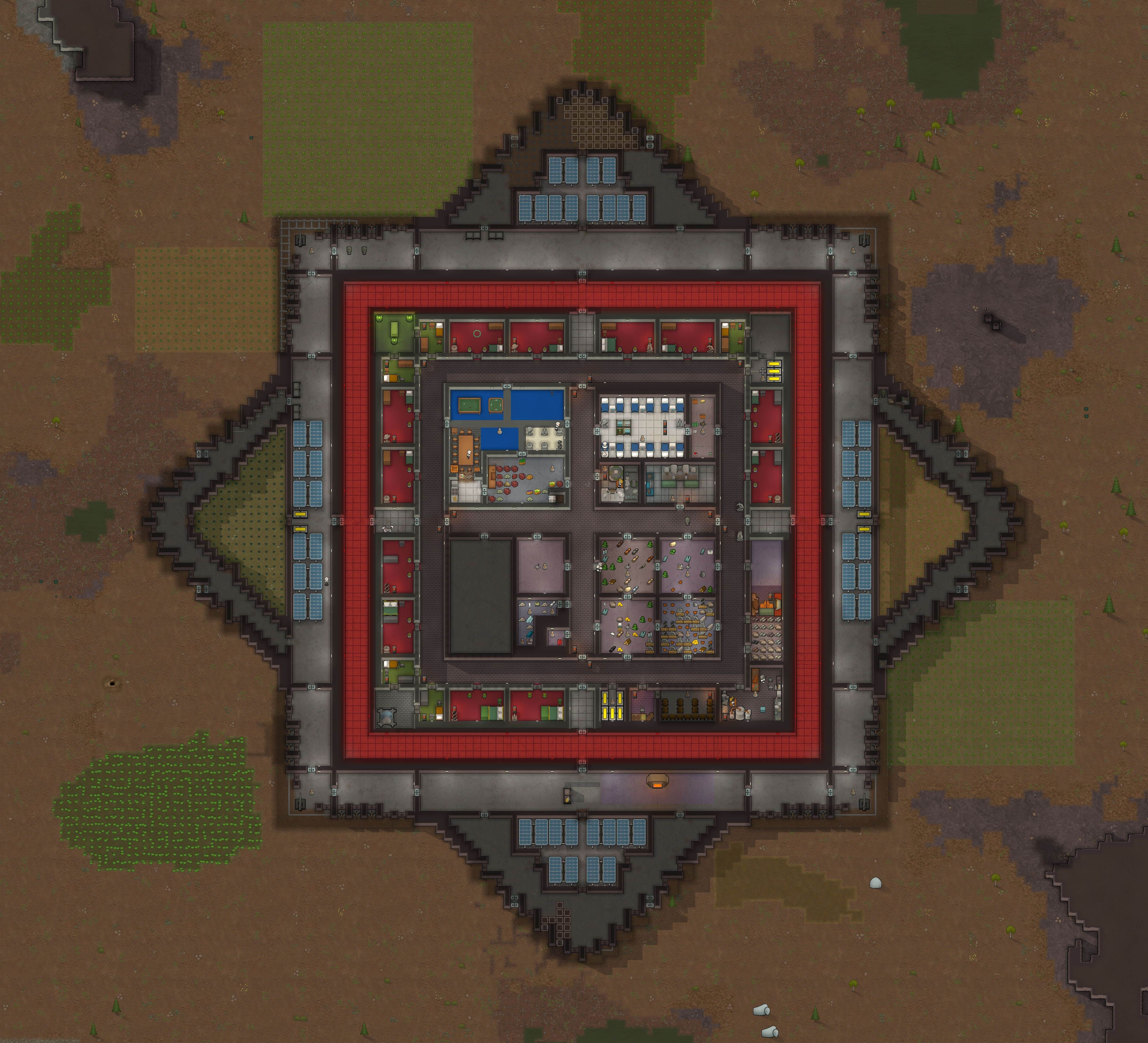 >>563959202yes, as I said, it's unfinished for now. I am planning to add another outer layer by extending the four corners and adding ravelins between them, then filling it all to the brim with turrets. Probably a minefield or hunter drones on the outside.picrel is a previous fort I've done back when royalty just released.I love starforts