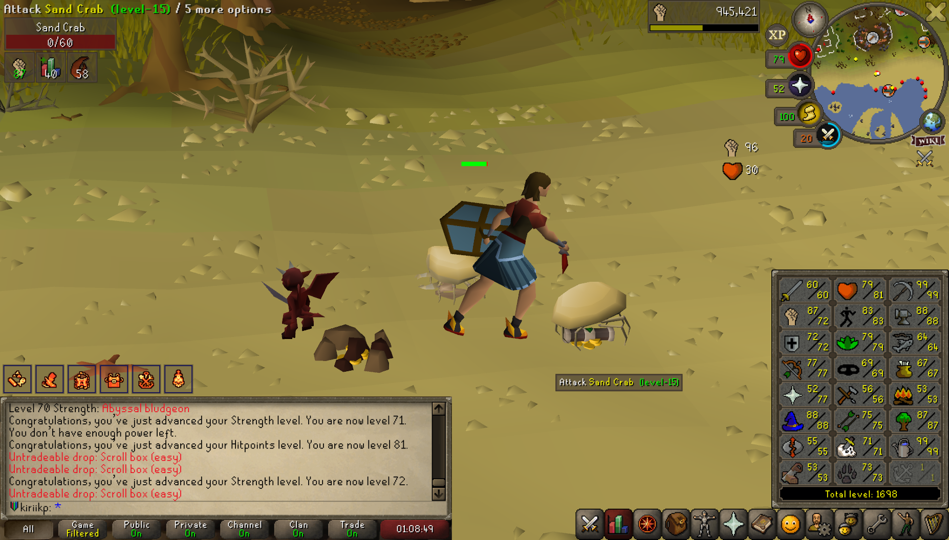 um i havent posted since the one about dust devilsday 3 report i got my melees to 70 on a couple crab tasks, unlocked desert and got enough pacts for 110% regen then spent the rest of the day chinning bursting and getting the master wandi got my magic to 99 range to 96 and slayer to 91100% regen is incredible qol i'd very much recommend it