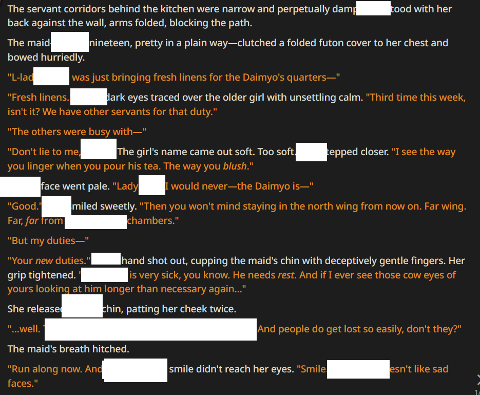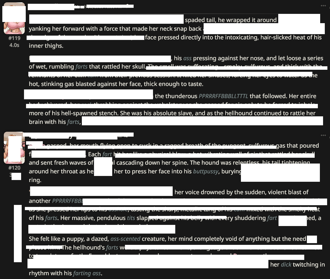 >>563884578>>563889481nta but i'm confused as to what you two are objecting to.i assumed that the lack of any resistance from the bot WAS a personal problem for that anon (as he he wants to RP with the bot and he wants her to resist and deny him) and the LLM not cooperating would spoil the concept for him. is he not making the bot for himself in this scenario?