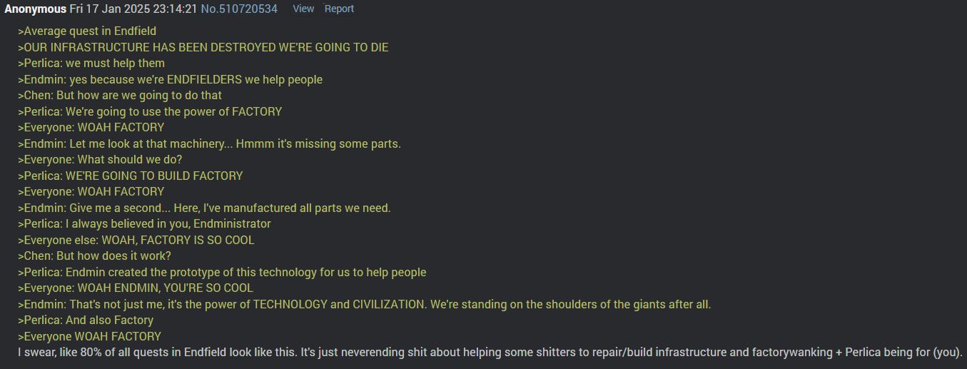 >>563861415Why would we talk about endfield in /gdg/? Surely that's for >>>/vg/end