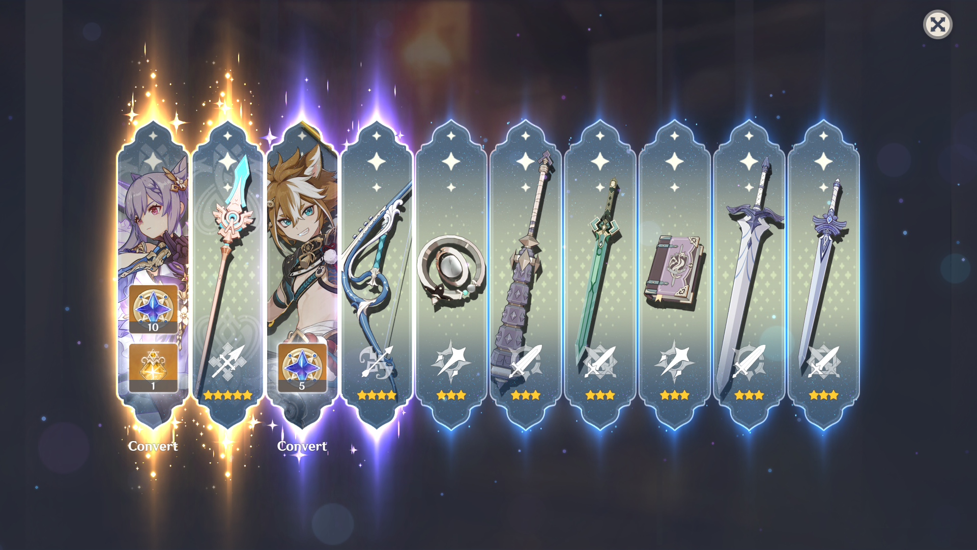>Current weapon banner: Golden Frostbound Oath (Bow), Astral Vulture's Crimson Plumage (Bow)