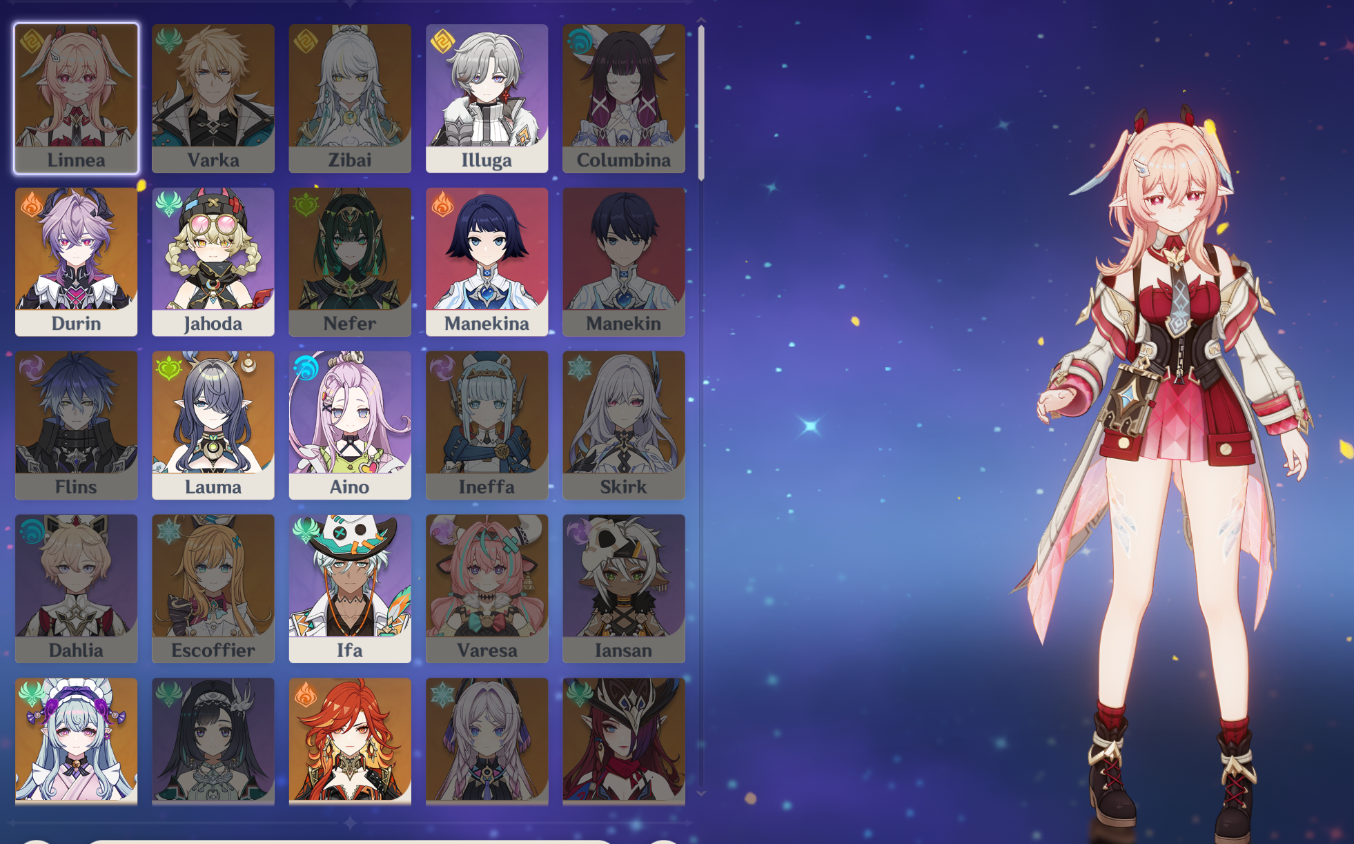>Current character banner: Linnea, Chasca, Illuga, Aino, Noelle