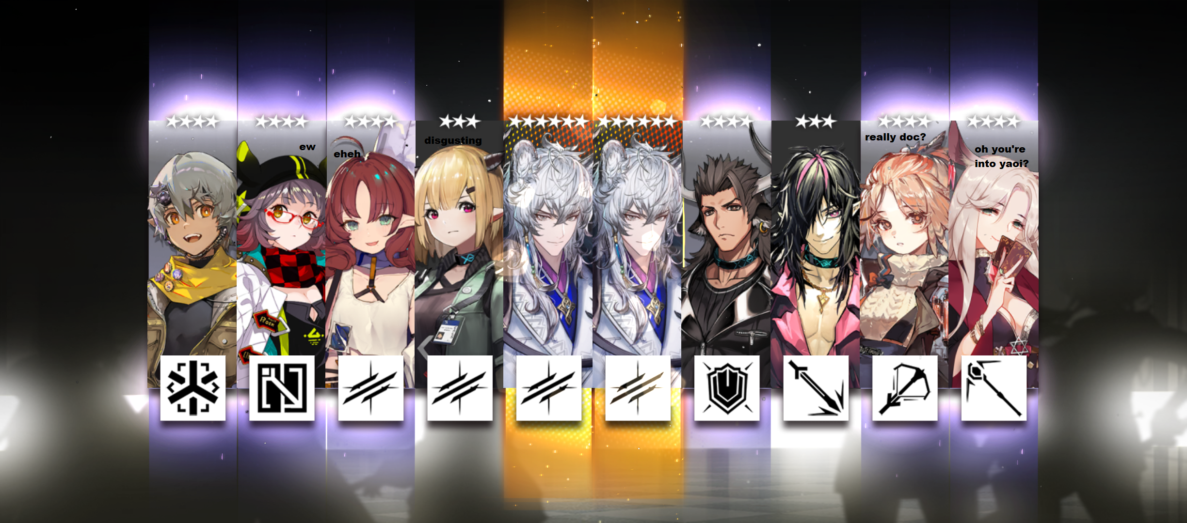 okay let's update Menheraknights, you got your Snegu and Cantabile for vanguards, all of Mujica and...