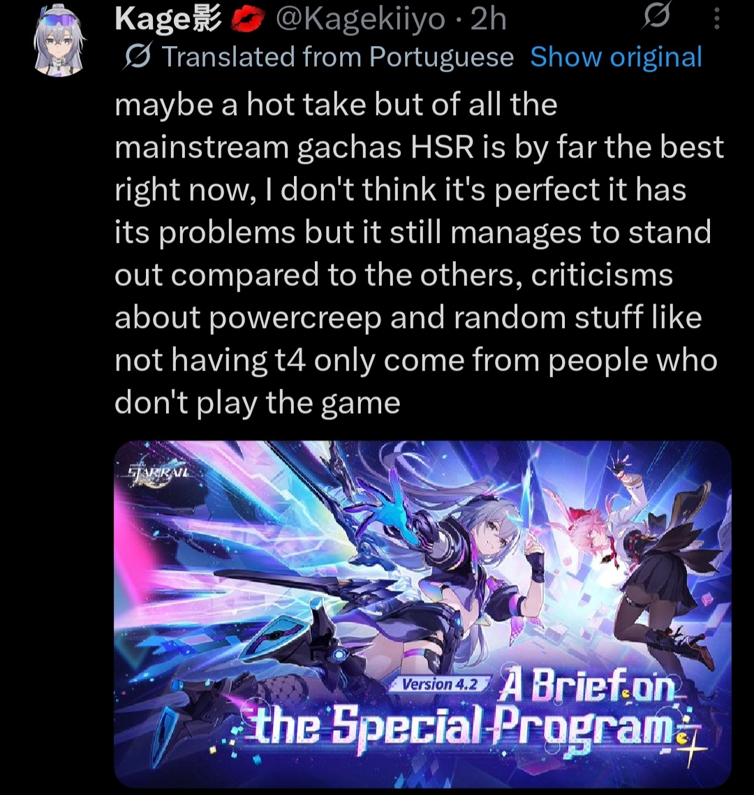 Previous: >>563849425>Download - https://hsr.hoyoverse.com/en-us/home>4.2 Preview Page - https://act.hoyoverse.com/puzzle/hkrpg/e20260410version_1370/index.html>Version 4.2 Trailer: "So Laughed the Masses"https://www.youtube.com/watch?v=NyM_seY0XKg https://www.youtube.com/watch?v=QaHPMkksn3U>Ashveil Character Trailer — "The Wolf is Coming"https://www.youtube.com/watch?v=8nXcEPRksLA https://www.youtube.com/watch?v=n6zuiPxJ15w >3rd Anniversary Theme Song: "Side Quest King"https://www.youtube.com/watch?v=jgtPZdB9cWA https://www.youtube.com/watch?v=Ndis7_as3vg >Honkai: Star Rail x MAPPA Animation Concept Trailerhttps://www.youtube.com/watch?v=j6e_4OYVbxc https://www.youtube.com/watch?v=KM7KoZM9wKE >Improv Tour Trailer: "Beginner's Guide"https://www.youtube.com/watch?v=FArOcK-HzXo https://www.youtube.com/watch?v=NEn6umYiiU8 >Myriad Celestia Trailer — "Scene 999: GAME NOT OVER"https://www.youtube.com/watch?v=paFelc1vM1khttps://www.youtube.com/watch?v=k9rCUlWO6y8>Current Character Banners: Ashveil, Boothill + Asta, Moze, Misha - https://www.hoyolab.com/article/44527129>New Drip Marketing:>Mortenax Blade (5* Fire Nihility) - https://www.hoyolab.com/article/44526609>Redeemable Codes - https://hsr.hoyoverse.com/giftAceDetectiveSTARRAILGIFT>/hsrg/ Tools & Resourceshttps://rentry.org/hsrg-resources-14>/hsrg/ Thread Templatehttps://rentry.org/hsrg-thread-template-14