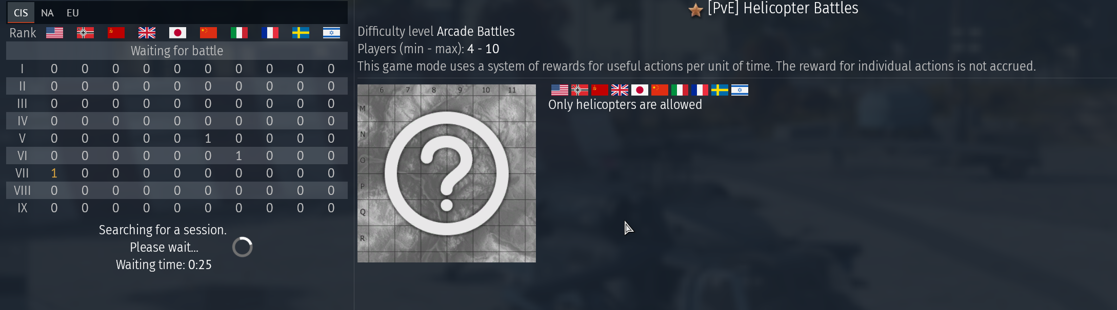 Where can you check the current Air Sim BR brackets? I want to spade a 14.0 jet but two rotations in a row 14.0 has been the bottom BR of the 14.0-14.7 bracket and I don't know if I can just wait and get a more favorable bracket or if it isn't getting any better and I'm just wasting my time waiting for a more favorable bracket that doesn't exist.