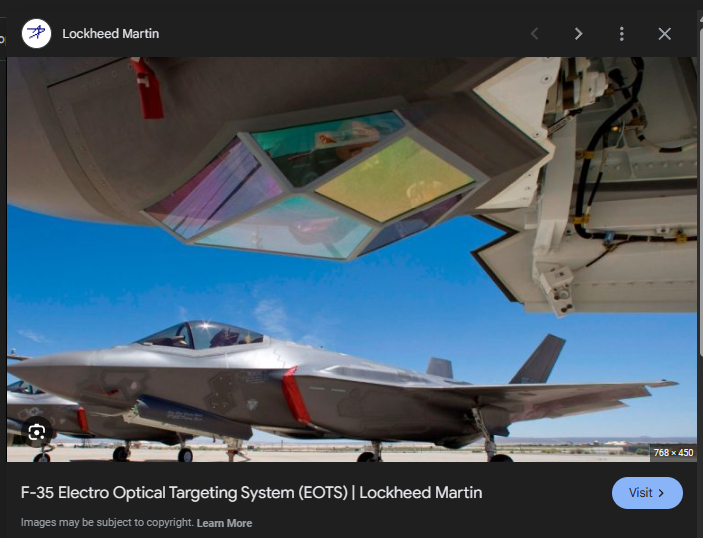 >>563994624>F-35 EOTSIt has great stealth geometry where all the angles are aligned with the airframe's own. Russia didn't do this because the Su-57 isn't a stealth design. 1000x higher RCS than the f-22 by Sukhoi's own admission.