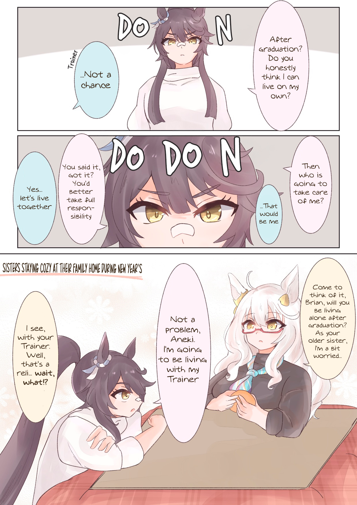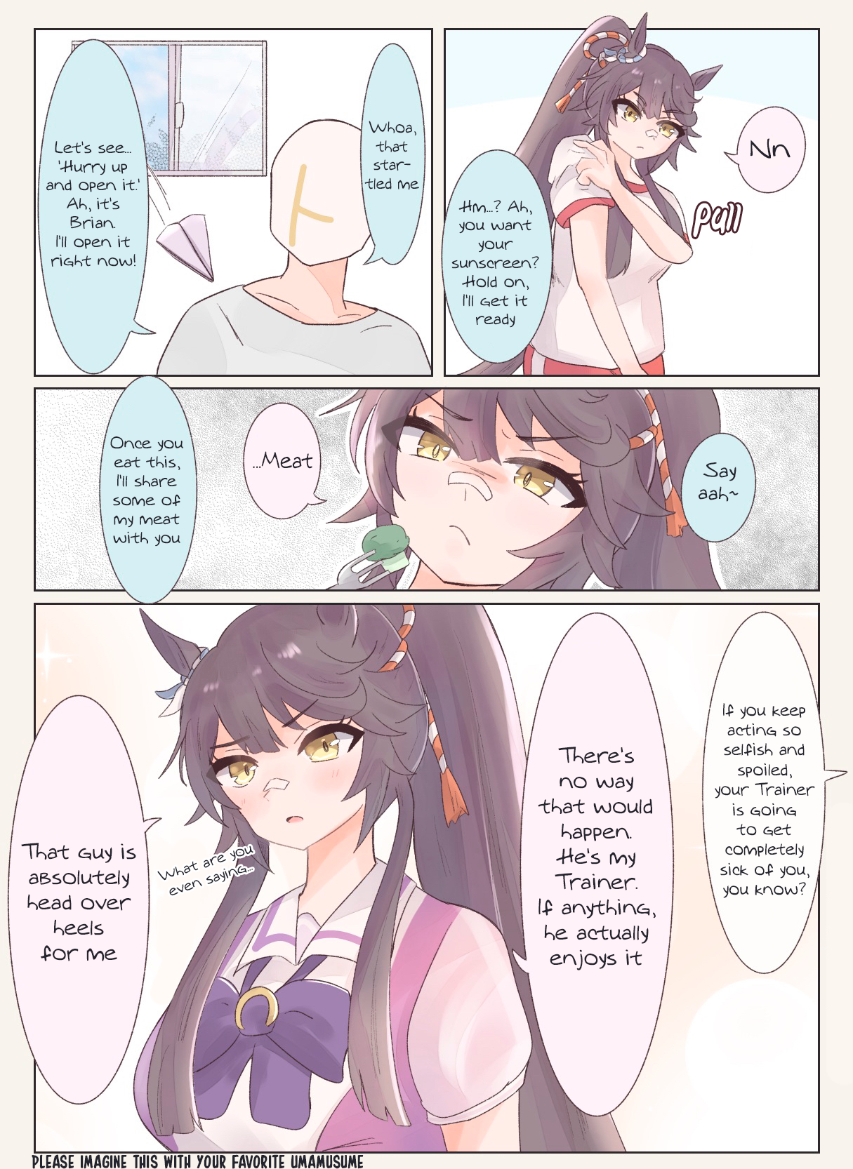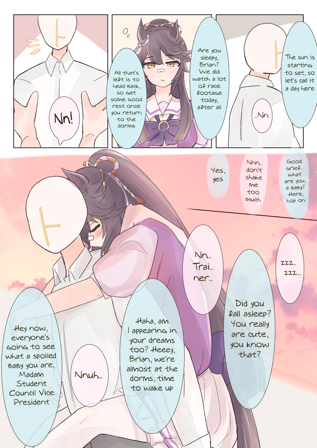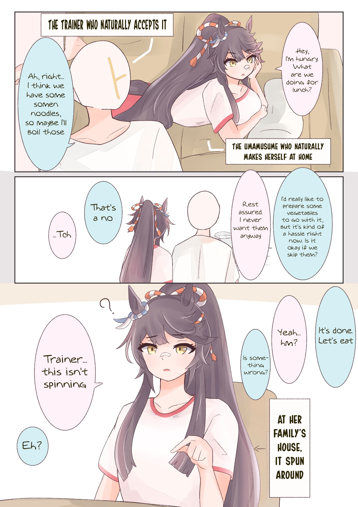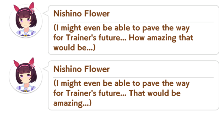 The bitter truth is, No Umas are for (You)They are for their future husbands, mostly people rich enough to raise their kids so they can attend Tracen like their mom.Trainer wagey money is not enough, so commoner Umas can only pray that their uma daughter are as talented as Oguri, Opera, Spe, Tamamo and Ines, or "special" like Urara.Mr CB said herself that her parents case is an outlier (Trainer Trainee couple) so that means 98% of Umas does not ends up marrying their trainers.
