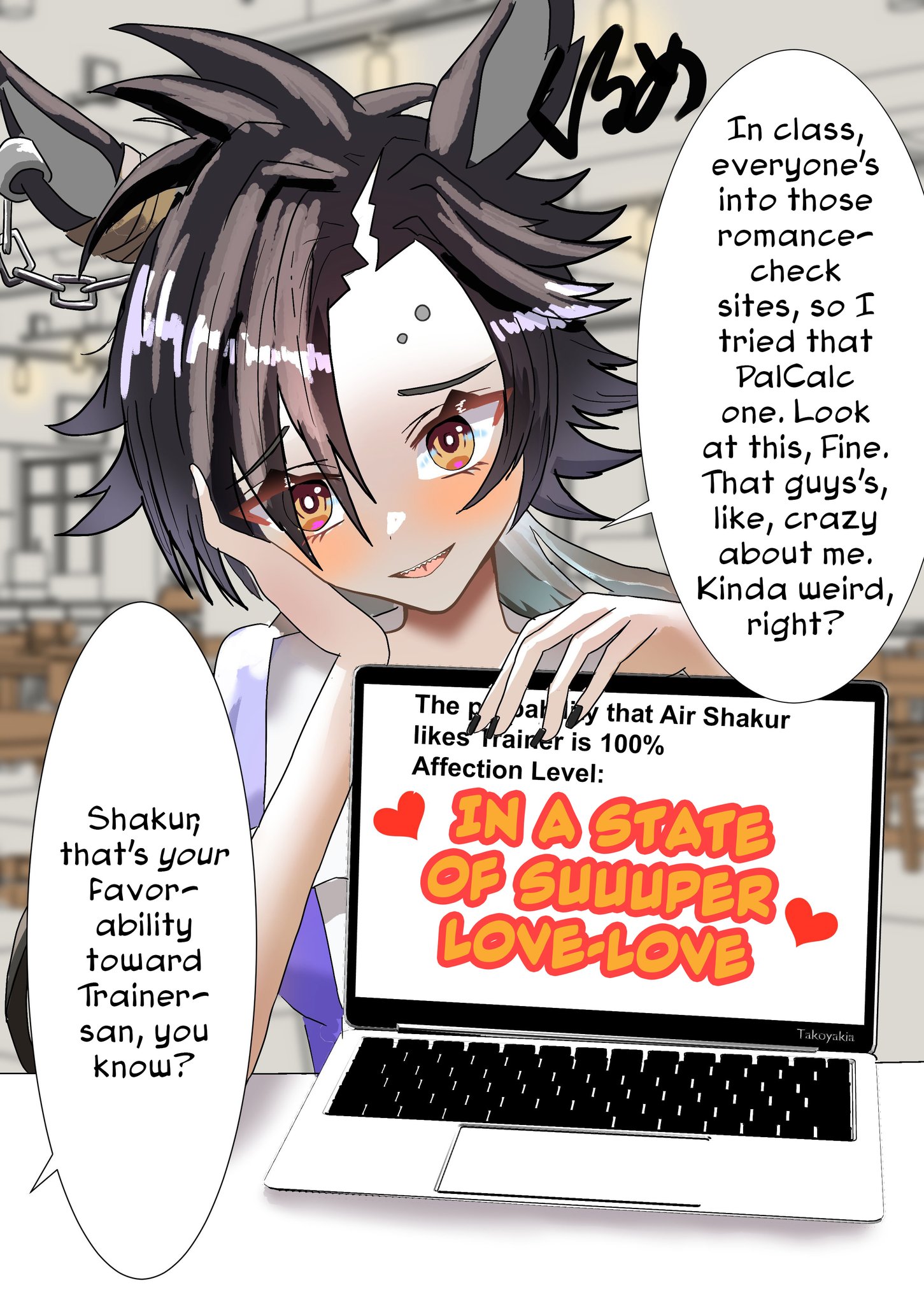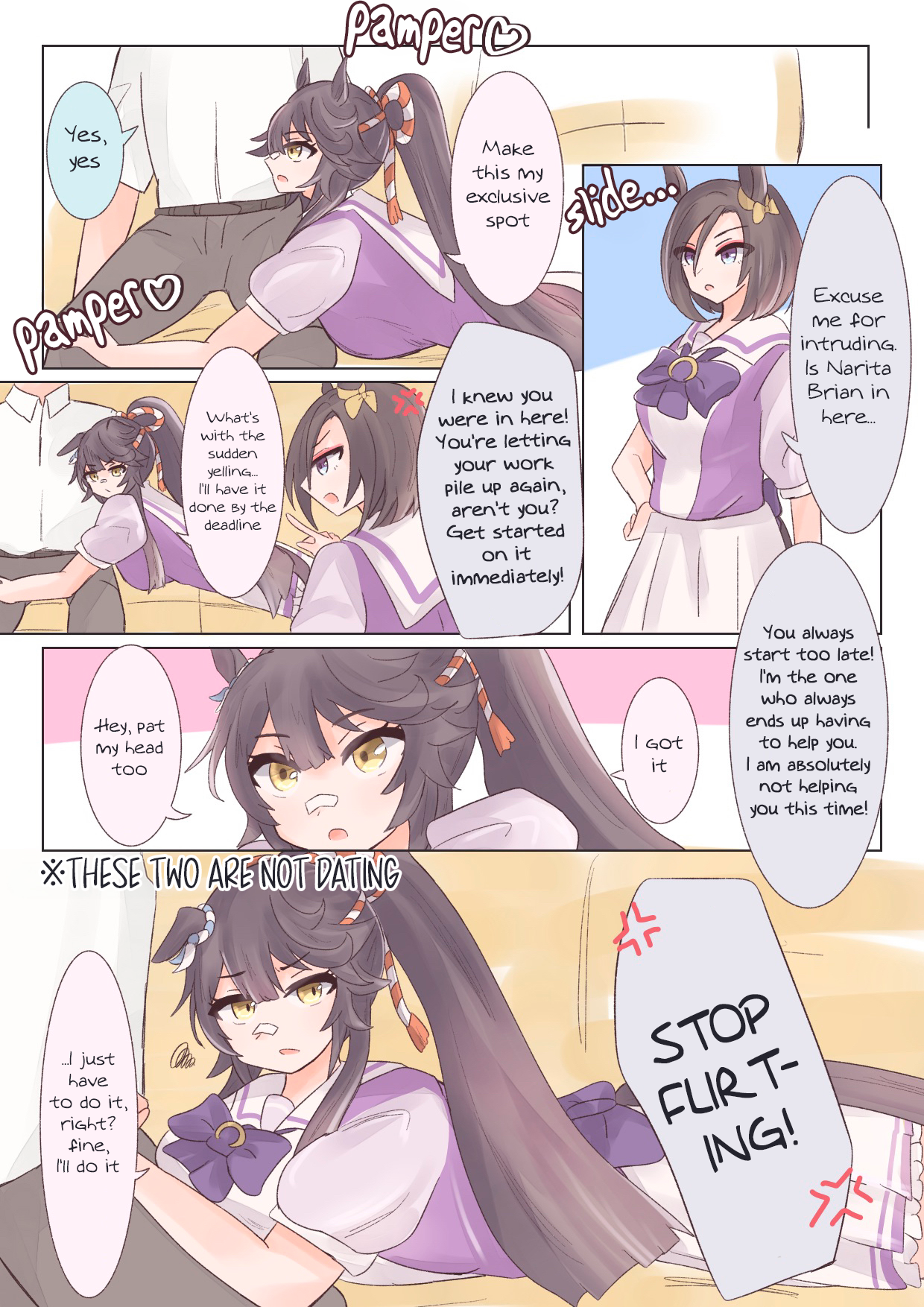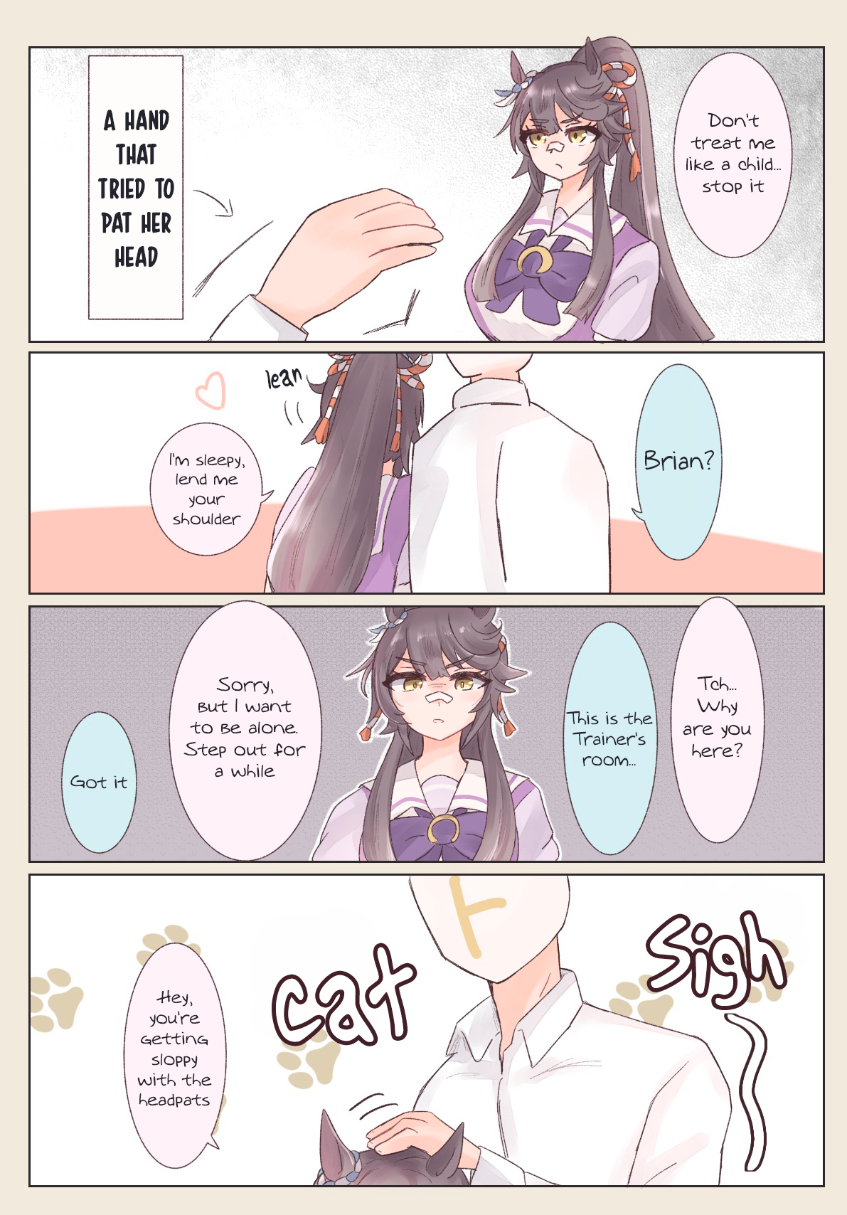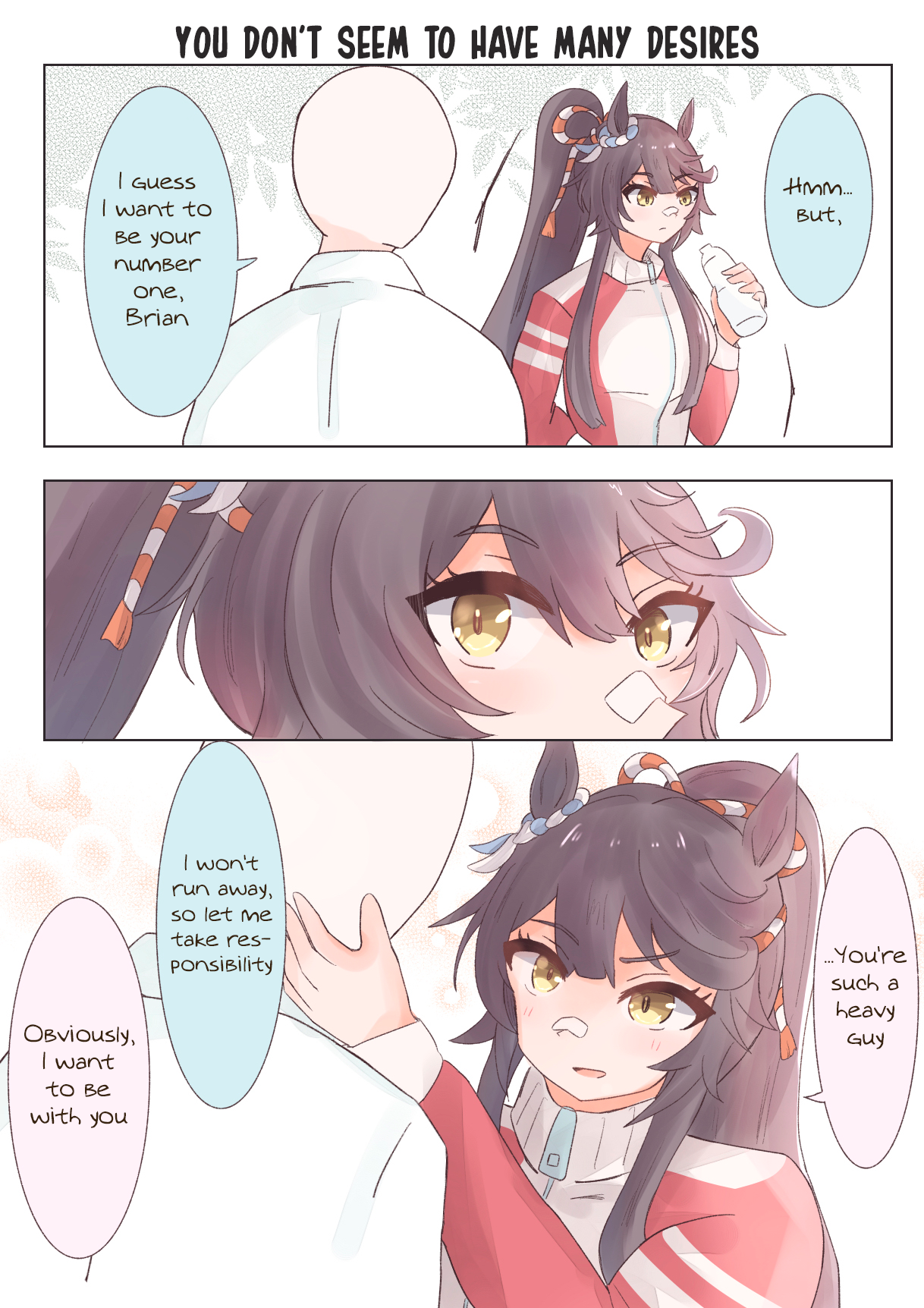 The bitter truth is, No Umas are for (You)They are for their future husbands, mostly people rich enough to raise their kids so they can attend Tracen like their mom.Trainer wagey money is not enough, so commoner Umas can only pray that their uma daughter are as talented as Oguri, Opera, Spe, Tamamo and Ines, or "special" like Urara.Mr CB said herself that her parents case is an outlier (Trainer Trainee couple) so that means 98% of Umas does not ends up marrying their trainers.