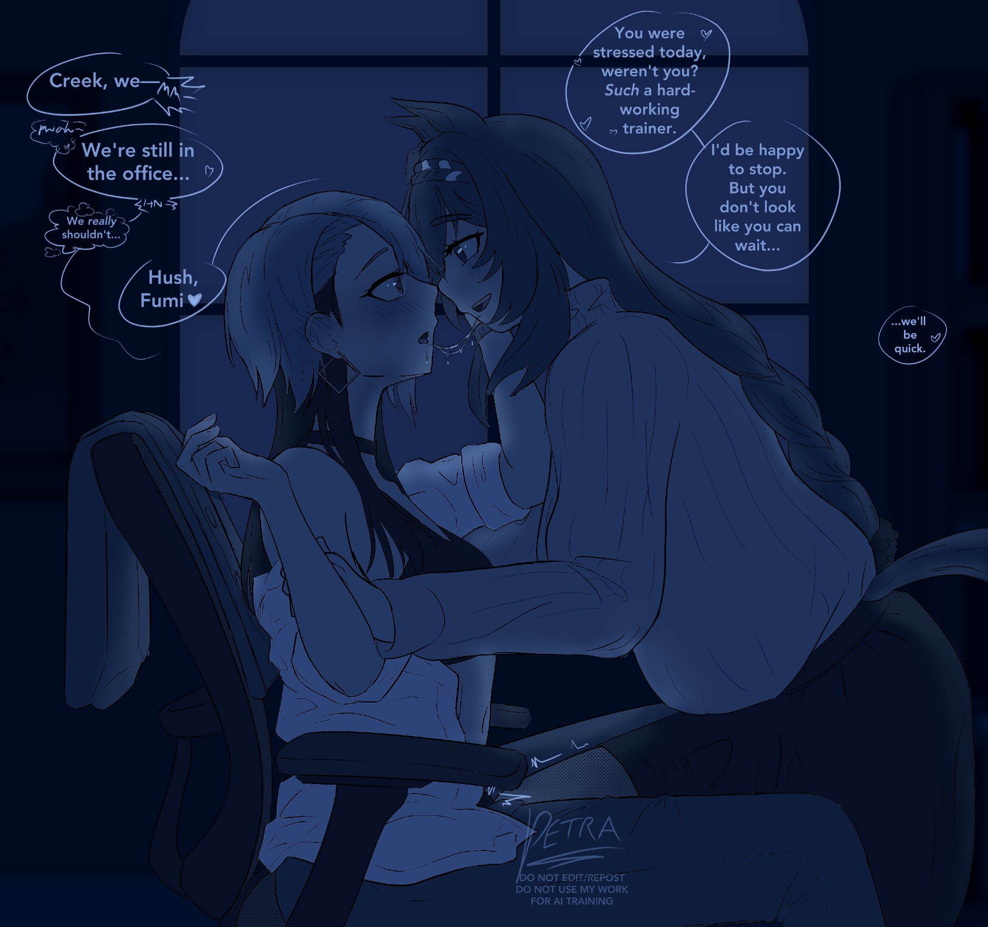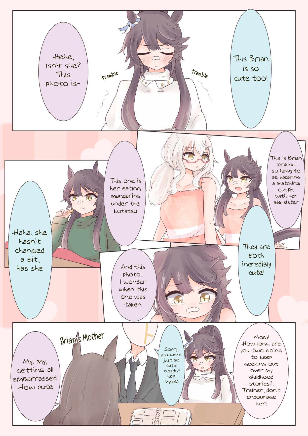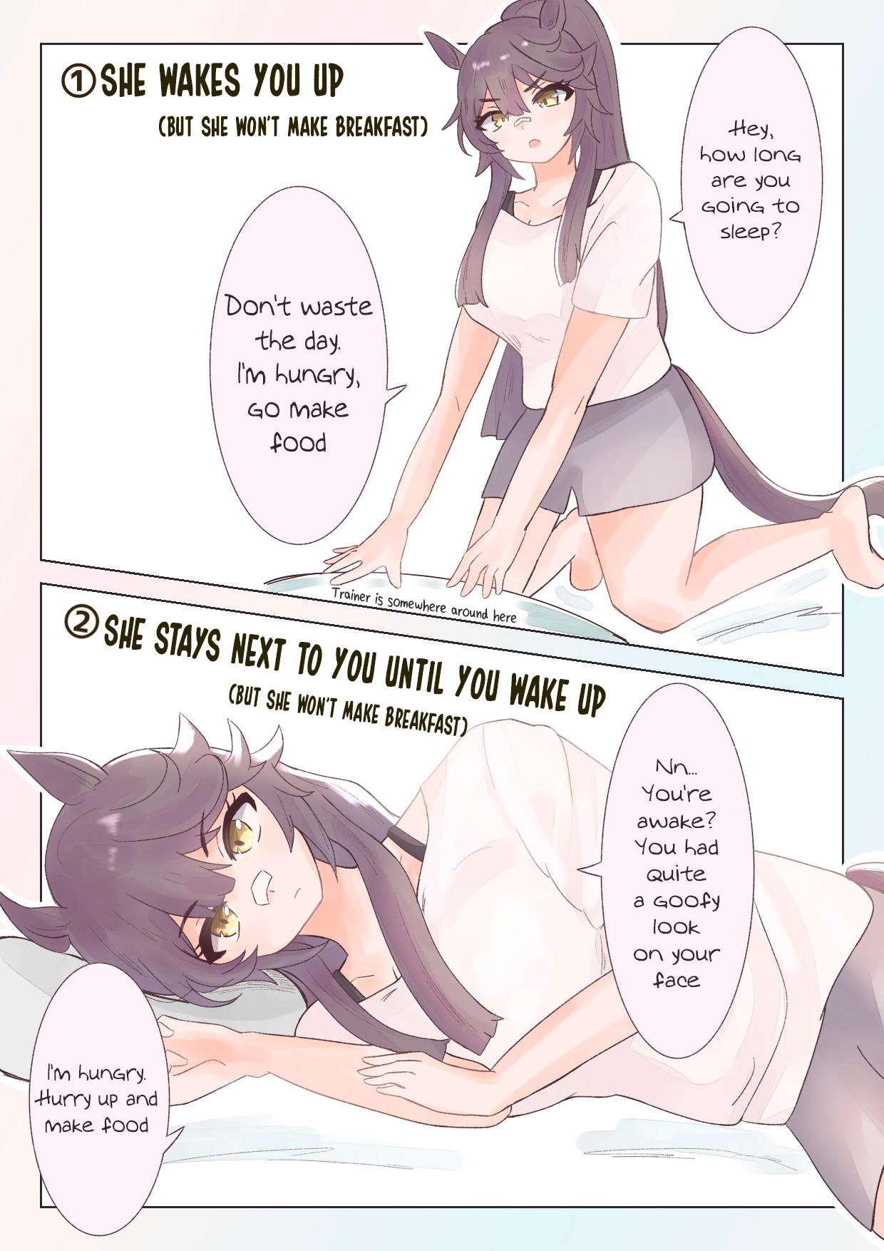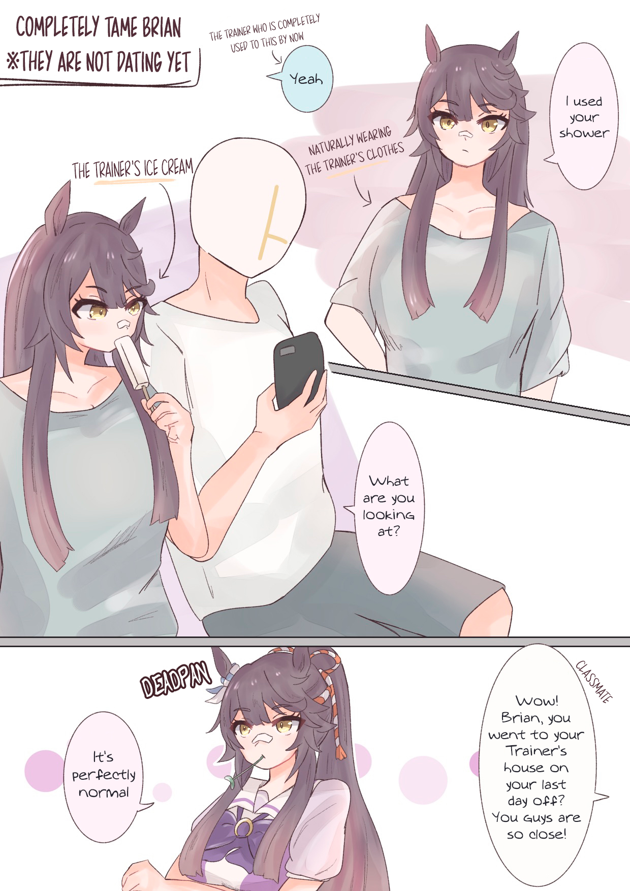 The bitter truth is, No Umas are for (You)They are for their future husbands, mostly people rich enough to raise their kids so they can attend Tracen like their mom.Trainer wagey money is not enough, so commoner Umas can only pray that their uma daughter are as talented as Oguri, Opera, Spe, Tamamo and Ines, or "special" like Urara.Mr CB said herself that her parents case is an outlier (Trainer Trainee couple) so that means 98% of Umas does not ends up marrying their trainers.
