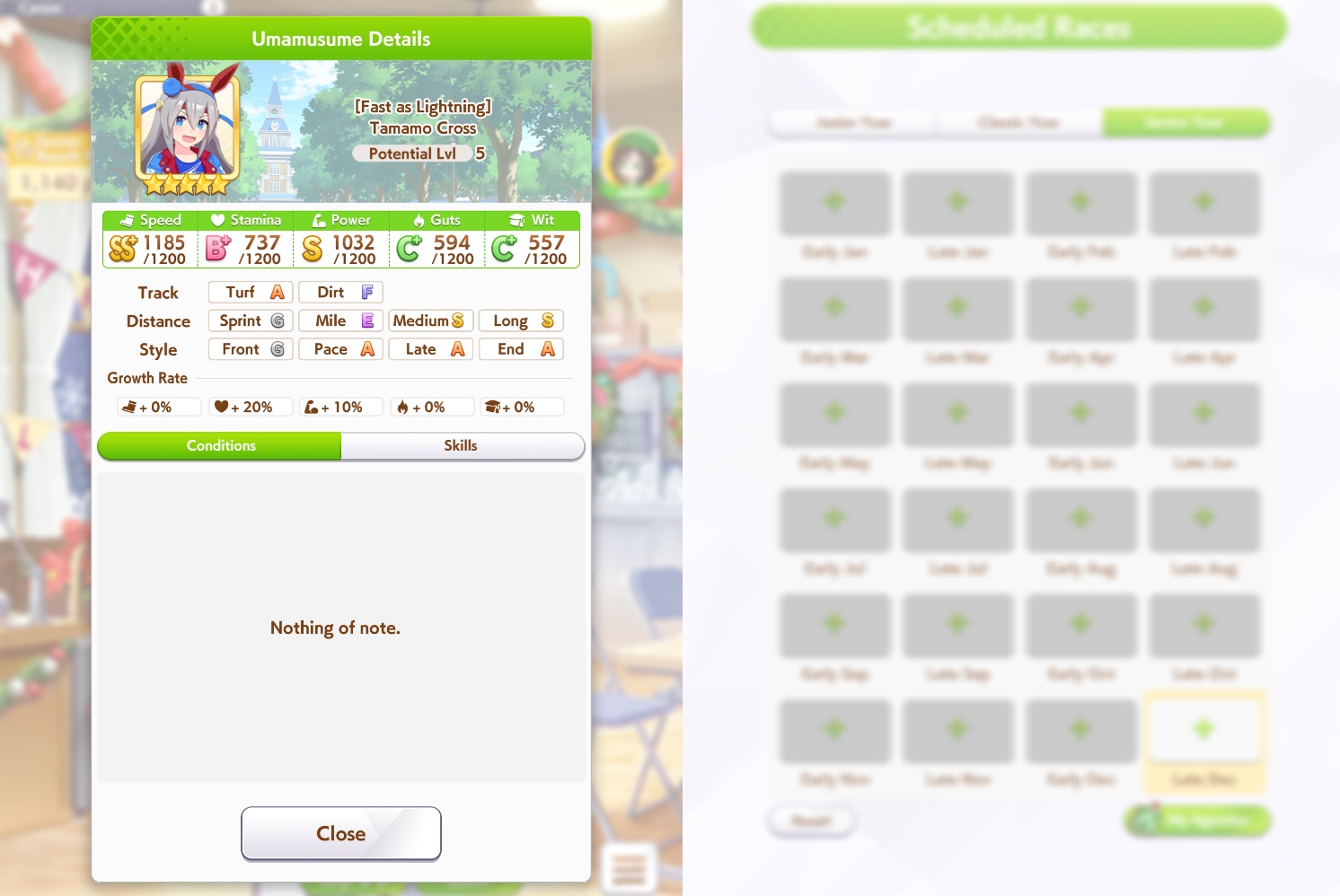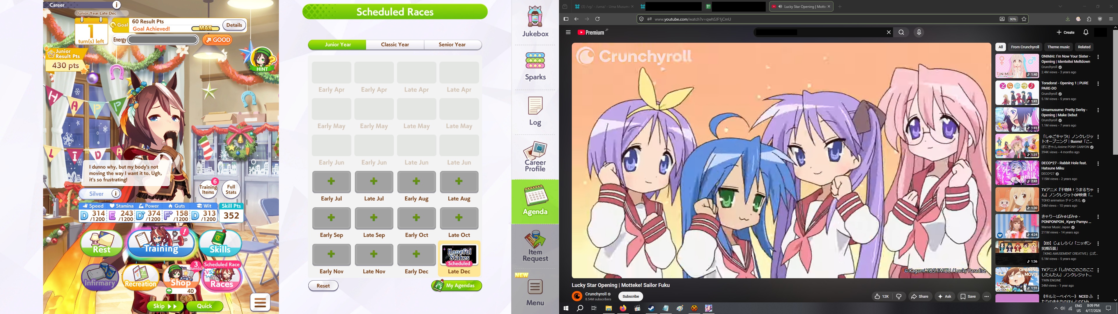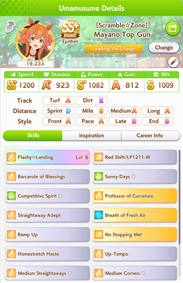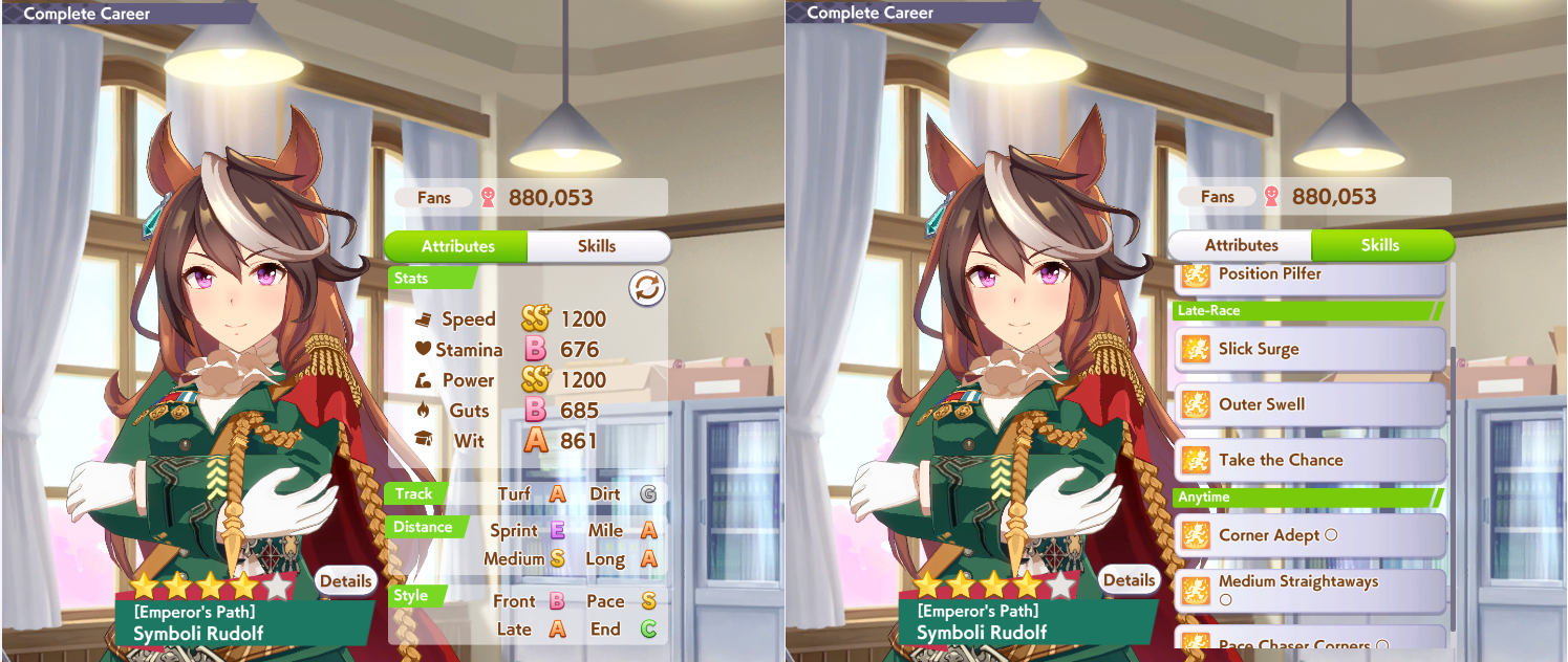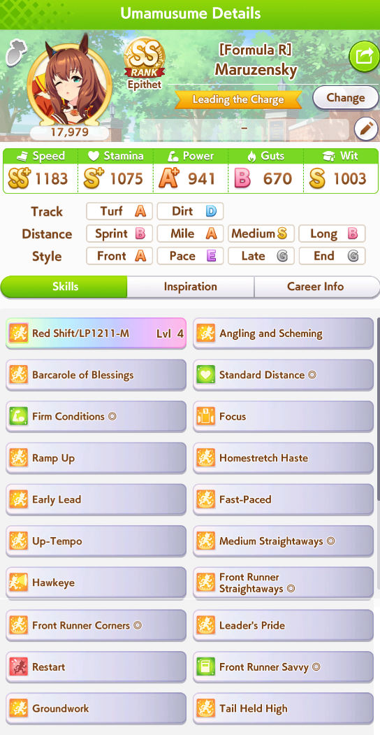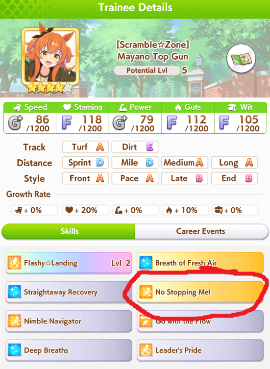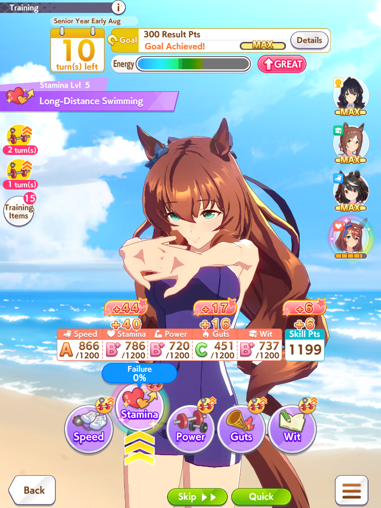 okay I'm getting kinda unlucky with stam trainings BUT with ayabe at least 50/50 stam power sparks is completely since you cap out on power early with her growths*takes notes*also long c is pretty nice because you don't have to juice up stam early--and you never lose long races anyway
