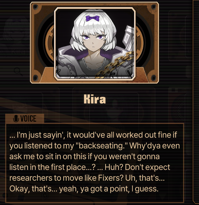 I think part of what makes Ringdya so hot even compared to the other Rodya identities is that she's been on a streak of absolutely miserable ones before this, and her ones that are happy(Rosespanner,Dieci,Liu, Devyat) all feel more like the mask of cheeriness she puts on.Meanwhile Ringdya is the 1st of her IDs that truly feels like she's already won at life, she's found her place in high society and shed her past. Now she exudes the confidence that comes with that in a way none of her other IDs do.
