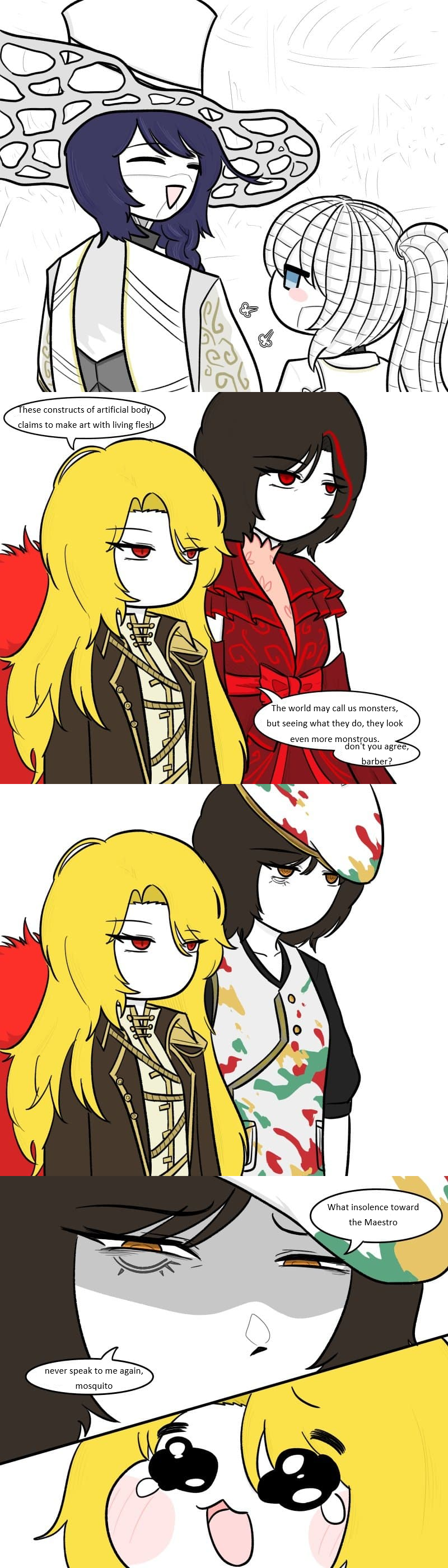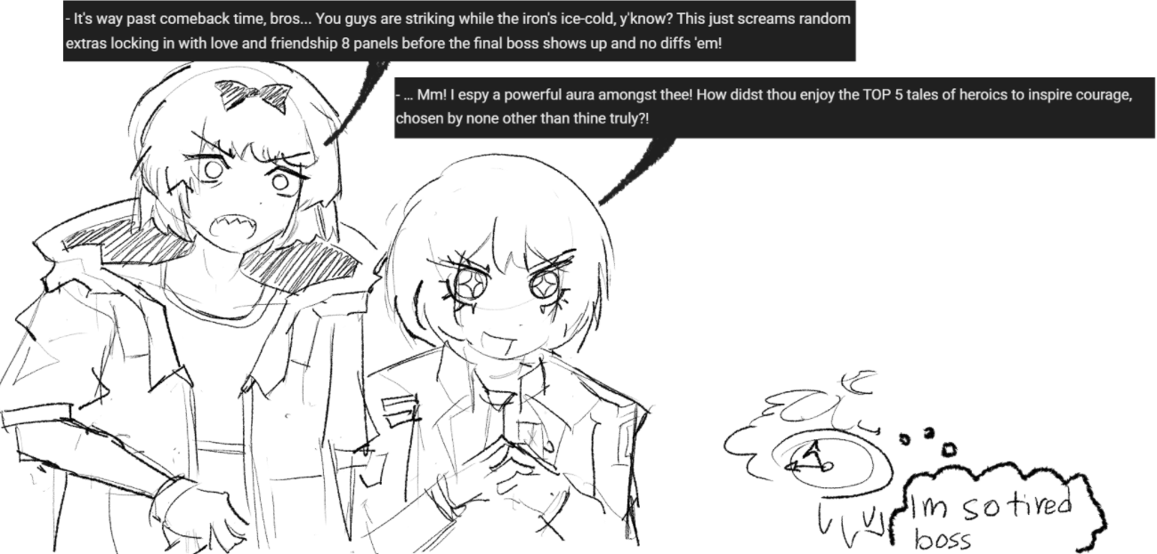 Oh in my assessment of the intervallo, I have some opinions; Rufo was really easy. I barely read her kit and I still managed to clear her with Ringsquad, Lu taking up 40% of the total damage. I'm hoping when the bokgak rolls around she's a lot more challenging. Emile was really cool and I'm super excited for the inevitable fight. Giant snake is really awesome in the true sense of the word. I liked the Ted scene (glory unto his name) and I especially liked Ryoshu's establishment of her art movement. As I said, it was a very good intervallo.