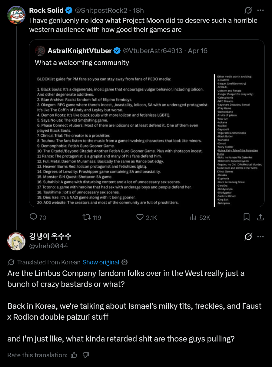 >>563909290Limbus fanfic writers and fanartists are fags, this is known. (ESPECIALLY fanfic writers, never seen anything ever good written for Limbus, LOR, or Lob Corp.)