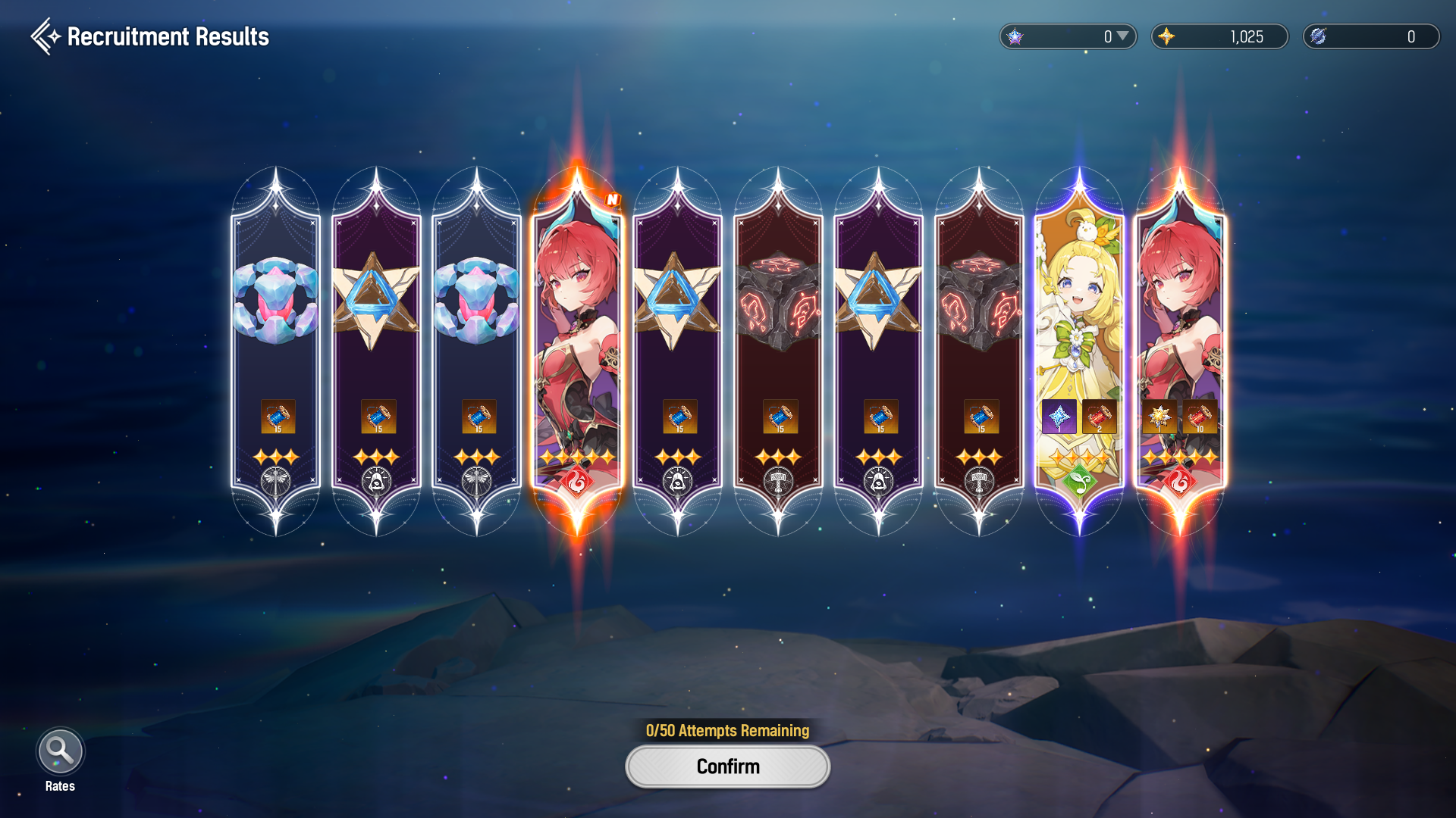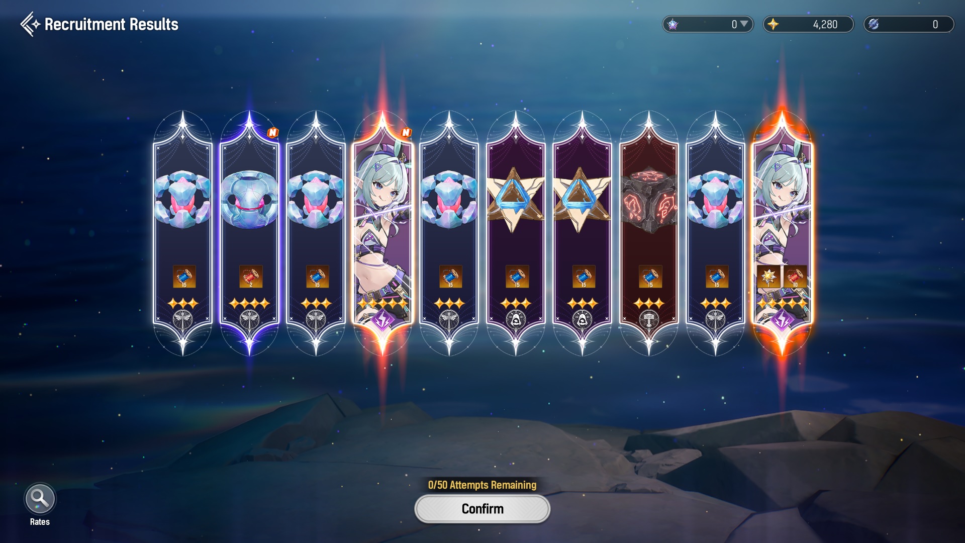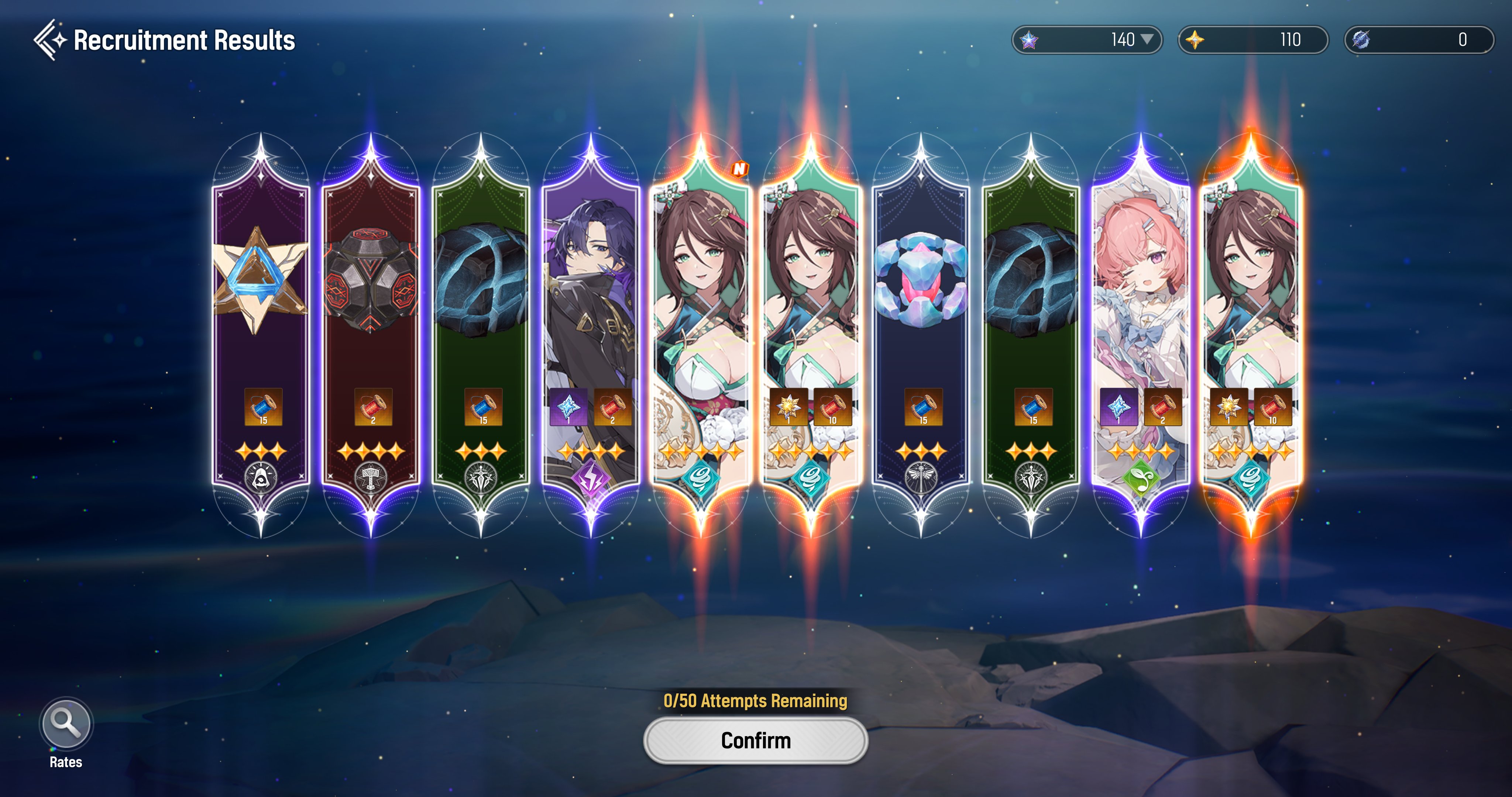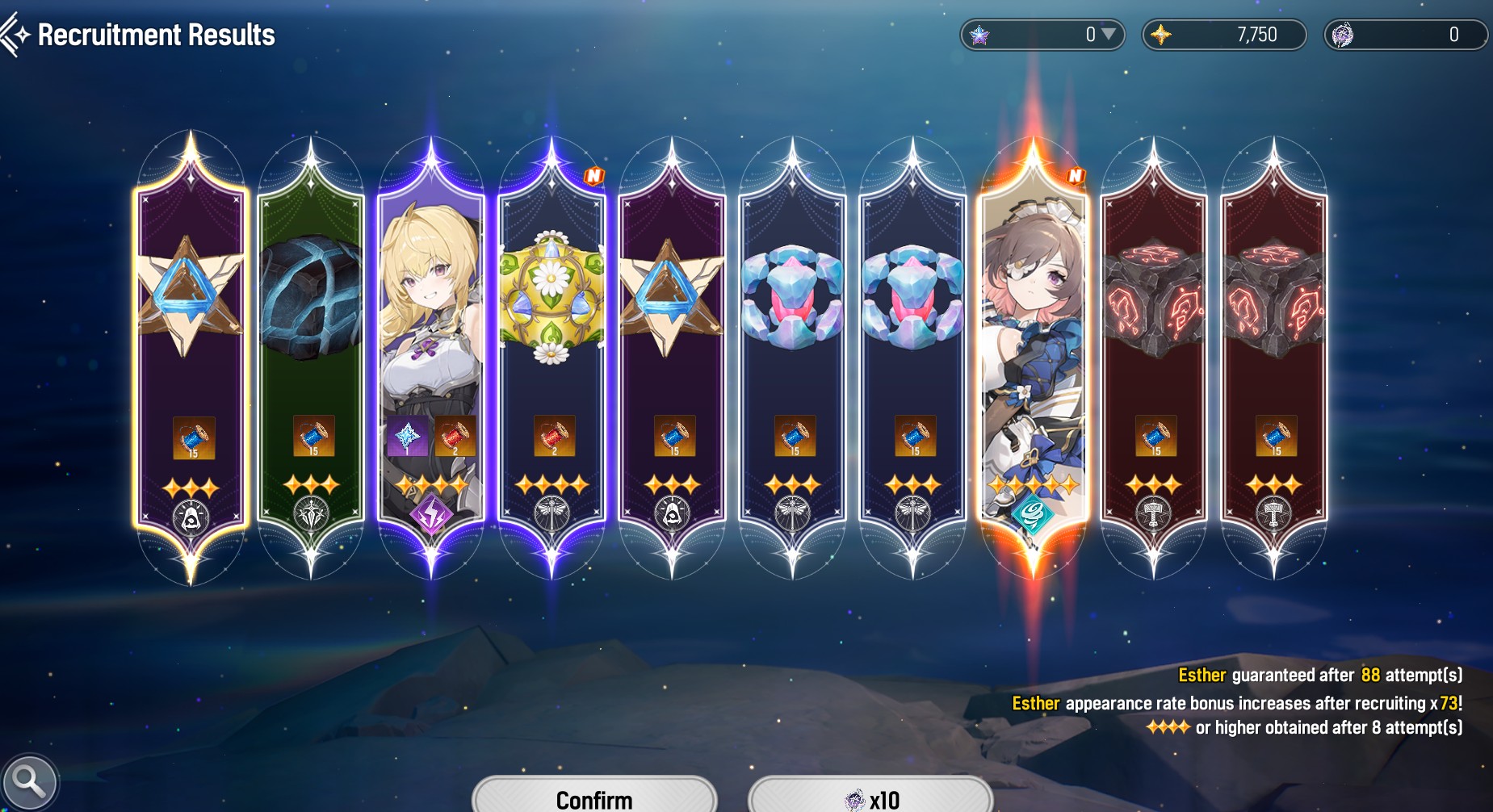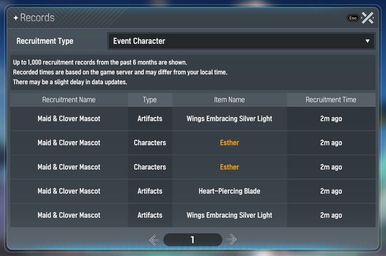 >Flare, Ophelia, Jiwon. Still have selector banner but 50 pulls no Esther>Sangun, Esther. Will select Jiwon. Got Esther first 10 pull.Which account should I stick with?