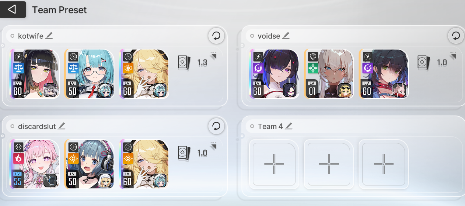 >>563950417It's best to focus on one team at first until you unlock basin where you need 2 teams.Basin resets every patcha aka 3 weeks and next reset is on April 29th.I recommend leveling first Sereniel, Narja and Cassius as your first team.You can grind for leveling mats to a certain point thanks to the blackhorn shop.
