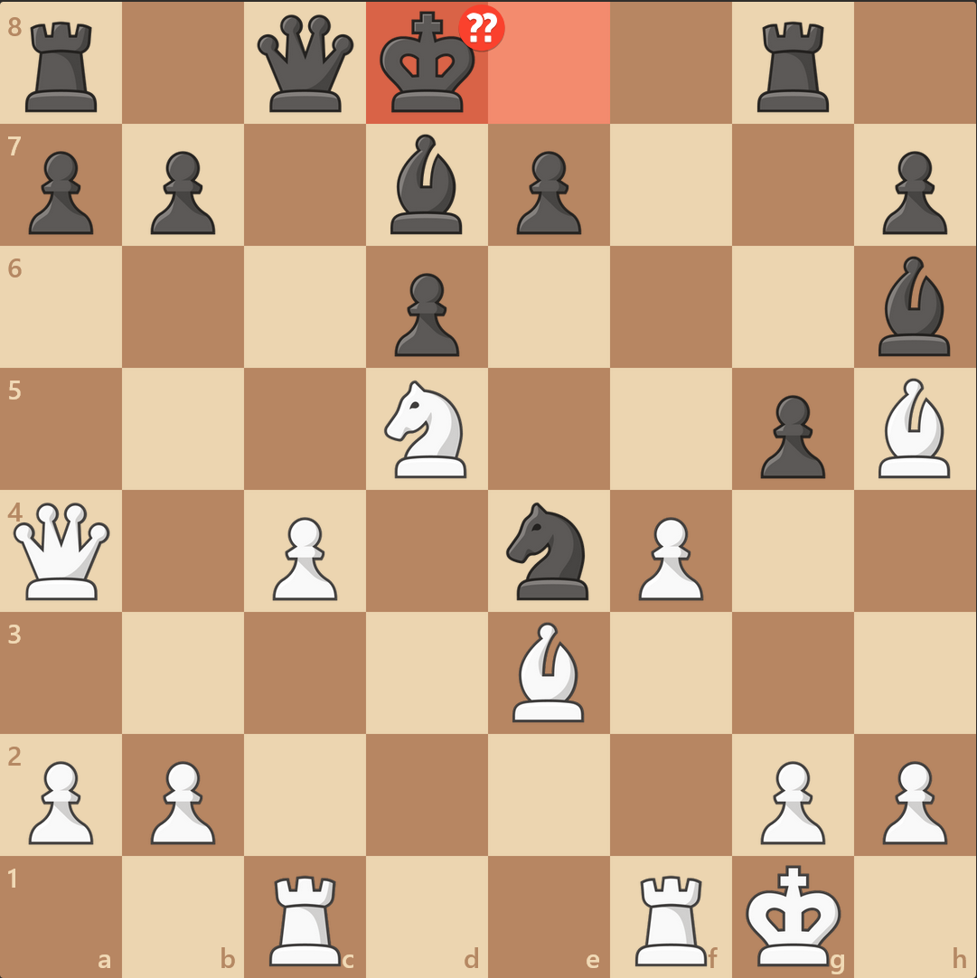 I was getting my ass kicked in my OTB tournament until he played …Rxg7?? After Nxg7 Rc7, he missed Qa1. Got away with 1.I’m now 2-0 with 2 rounds to go. Only 3 undefeateds left (out of 18) and I’m the lowest rated.