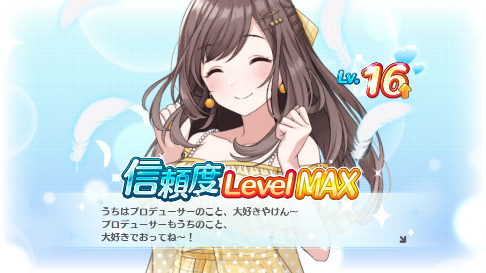 If you reach max affection level with your idol through countless P-cup farming, she straight up confesses to you