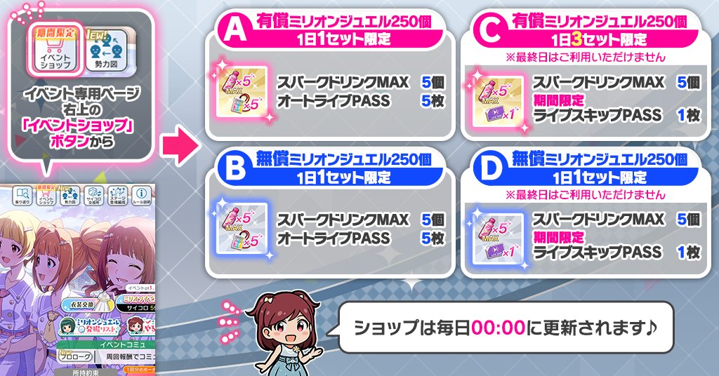>>563972785https://x.com/imasml_theater/status/2045382064699253181MAX Drinks, Auto-Live Passes and Skip-Live Passes are available from the event shop.