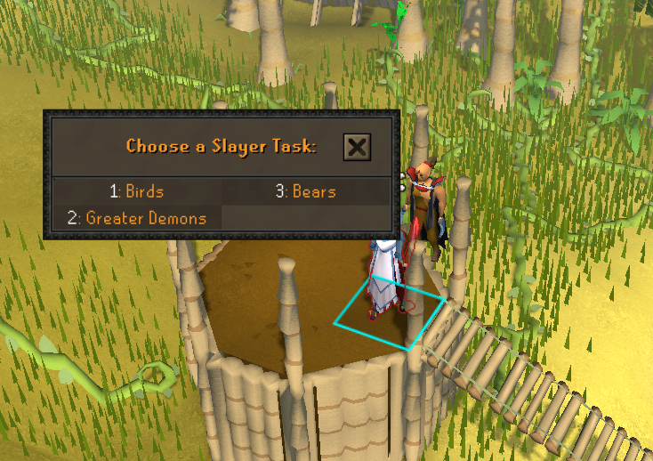 >>563945572what you see:>birds, bears, greater demonswhat the game sees:>kree'arra, callisto, k'ril / skotizo / tormented demonsThe Slayer task list doesn't seem to give a fuck about what regions you have unlocked, and will assign you banger tasks like "spiders" thinking you're going to go kill Venenatis.