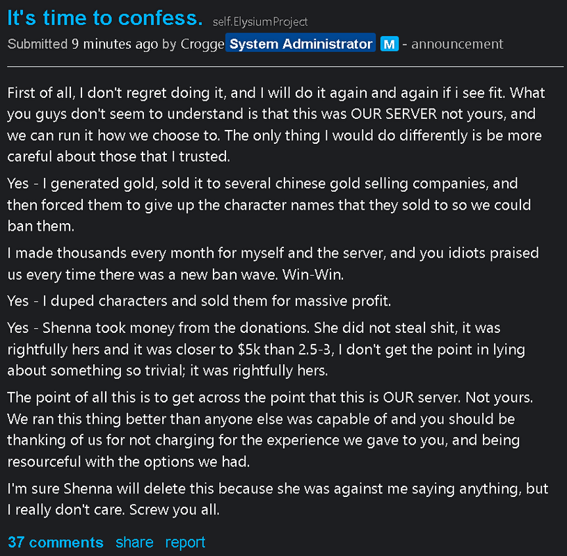 >>563967029I can't imagine anyone actually fucking BUYING gold on a server that might not even get any updates anymoreWhy are they doing it? Who the fUCK are these people? Are they even people?