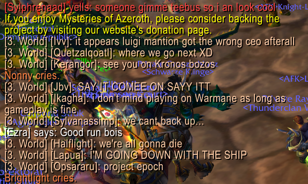 >have to parse through hundreds of posts of newfags behaving like women, screaming random words and phrases while trying to argue about any conceivable topic just to learn any news:< I found out about Warmane taking down their DL links through fucking T-WoW world chat.