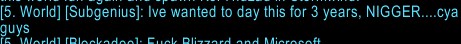 >>563966668The funny thing is that I played with that person once and they MIGHT be a girl (or they sound like a prepubescent boy) which makes it funnier that some whore dropped an all-caps NIGGER. They had a routine going selling poems in world chat too.