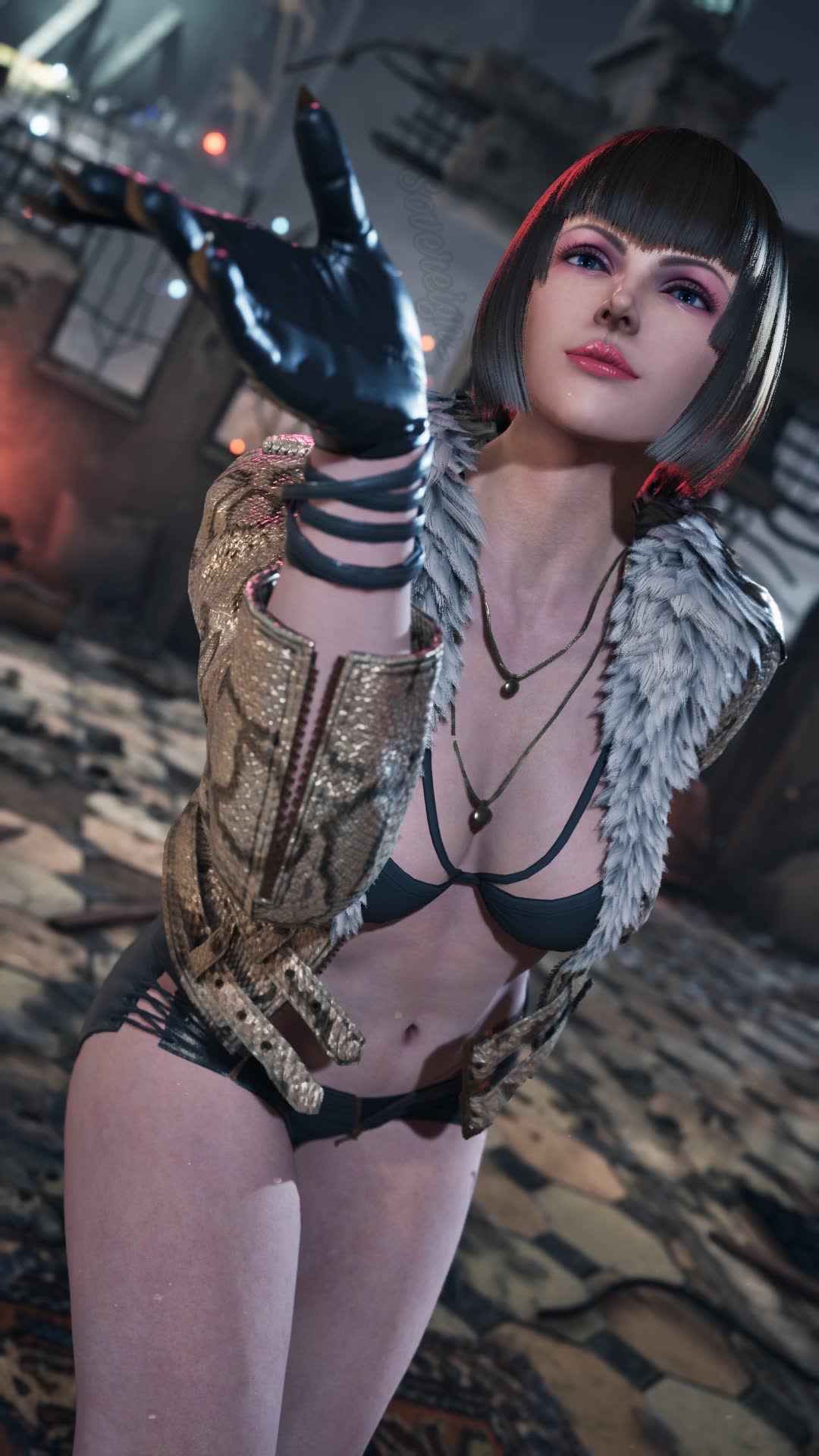 >chat jewPT prease generate me character modern hrt addicted audience would like, make her extra kawaii but also menacing, also give her the devil gene and also make her a Mishima, arigato