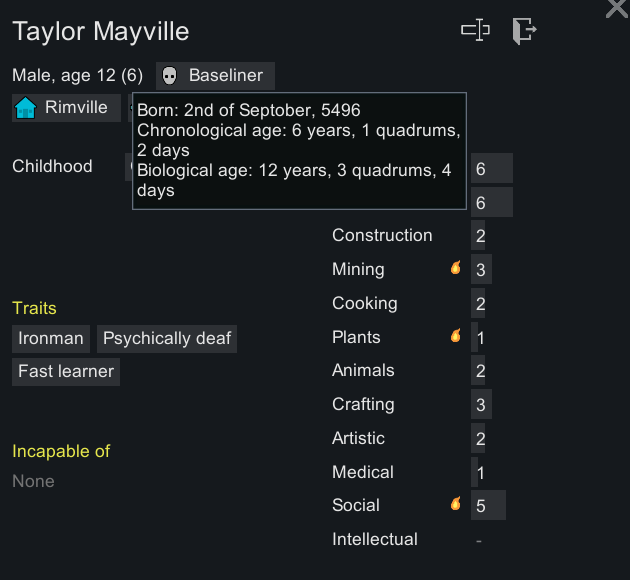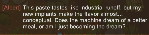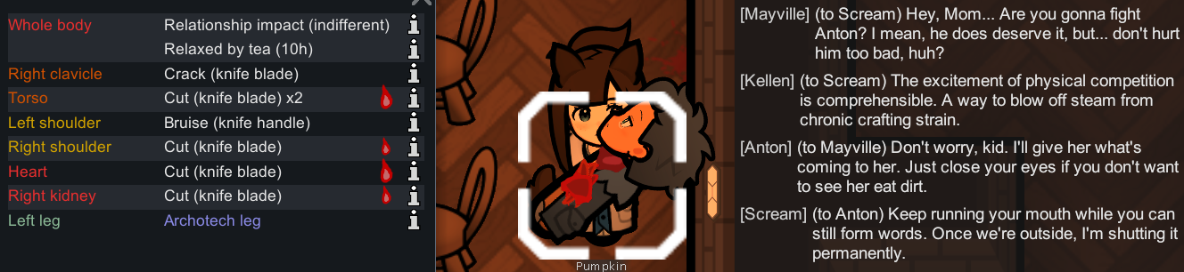 >>563993541I'd prefer if they just did some big vanilla revamp. There are so many little annoyances infesting nearly every mechanic in the game. Apparel, for example - there are slots for skin, middle, outer, hat, utility, etc. but clicking the gear menu just shows the items in a list. Is the shirt skin or middle? Is the jacket middle or outer? Fuck you, that's what it is. You've got to click the item, bring up the information panel, squint through another list of every property the item has before you can figure it out. Want to craft a middle layer item for your colonists? Can't filter the bills menu by gear slot, so you've got to scroll all the way down this list, and if you don't know what item you want to craft already for that slot, you better enjoy clicking the info panel for every single item.I've got over two thousand hours in this game and that still annoys me. Sure, I might know all the vanilla apparel by heart, but as soon as I throw a new mod into the mix, all that knowledge turns useless.And yes, UI mods exist. I use them. That does not excuse the vanilla systems being such a mess. And this is just an example of one of hundreds of terrible decisions made nearly fifteen years ago that are still plaguing this game.
