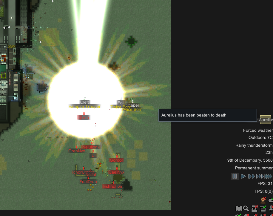 >add revia faction (bio)>raided by 60 fox whores>they didn't get a single one of my guys>captured 20 fox whores, the rest burned to death because they love spreading fire everywhere, like the stupid fox whores they arei don't have enough draincaskets for all of them
