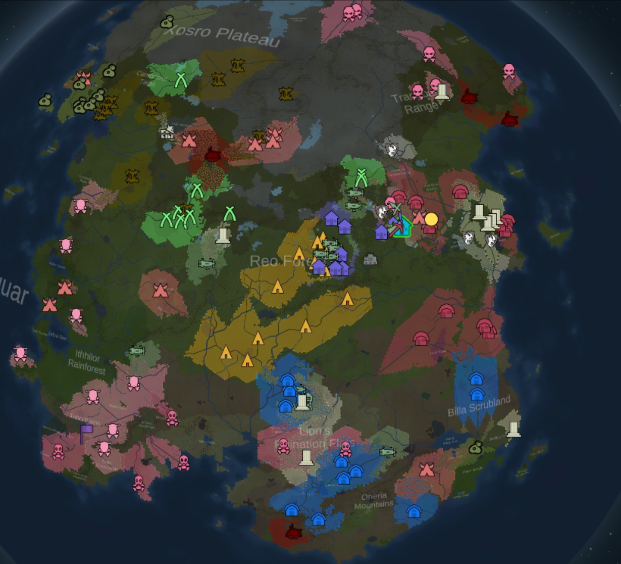 >>563990000i use Faction Control to get them to bunch up, and I also generate a 30% world coverage map, here is what mine looks like. Faction Territory has a painting radius you can change, i set it to 12.