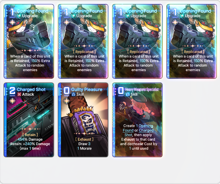 >>564001229Depends on the team, for example with Sereniel you want predator's blade and the upgrade that gives 1 cost and cheaper attacks 40% damage boost. You get so much value with the lasers from both cards
