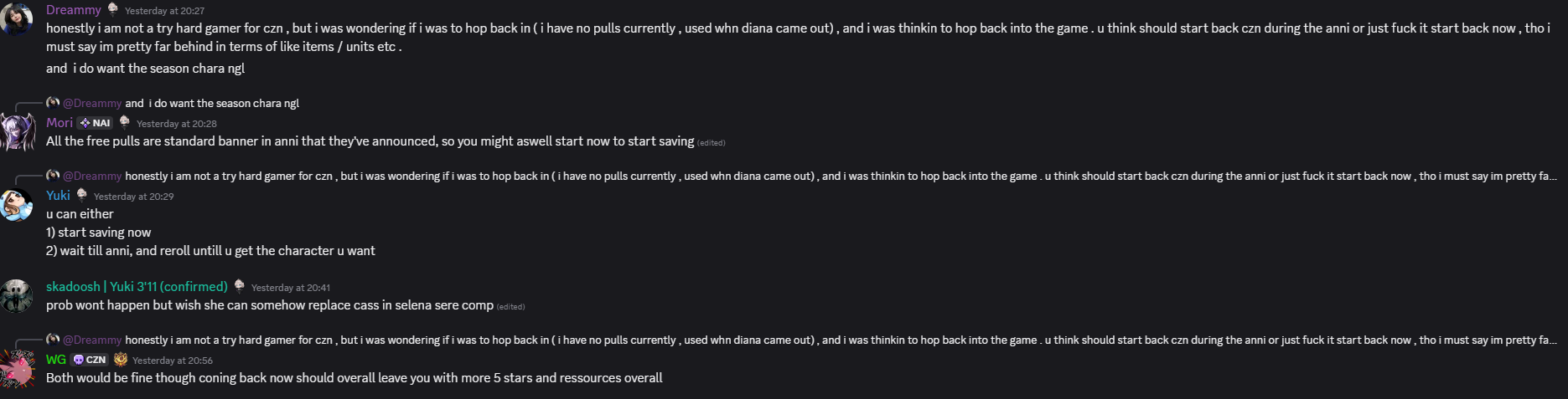 >>563970337I save between banners and pull most characters in a season. This season I skipped Nine and Diana