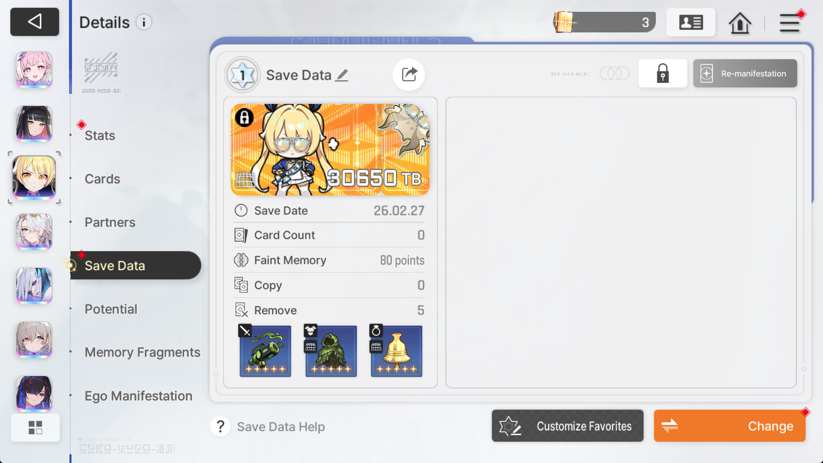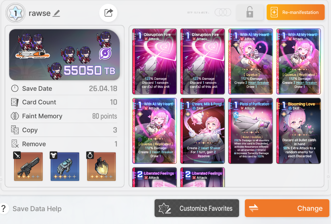>>564000484>wtf im guessing you play her ass with a hyper specific exhaust character or a brick AND WTF you can customize the save datas??For some things you want decks with really little or no cards at all.Save data editing is one of the best things in the game