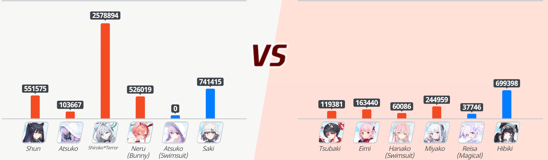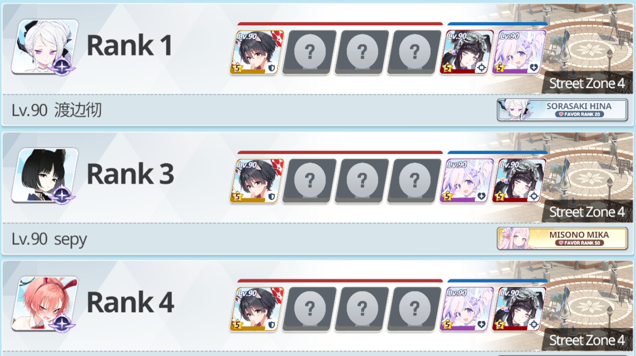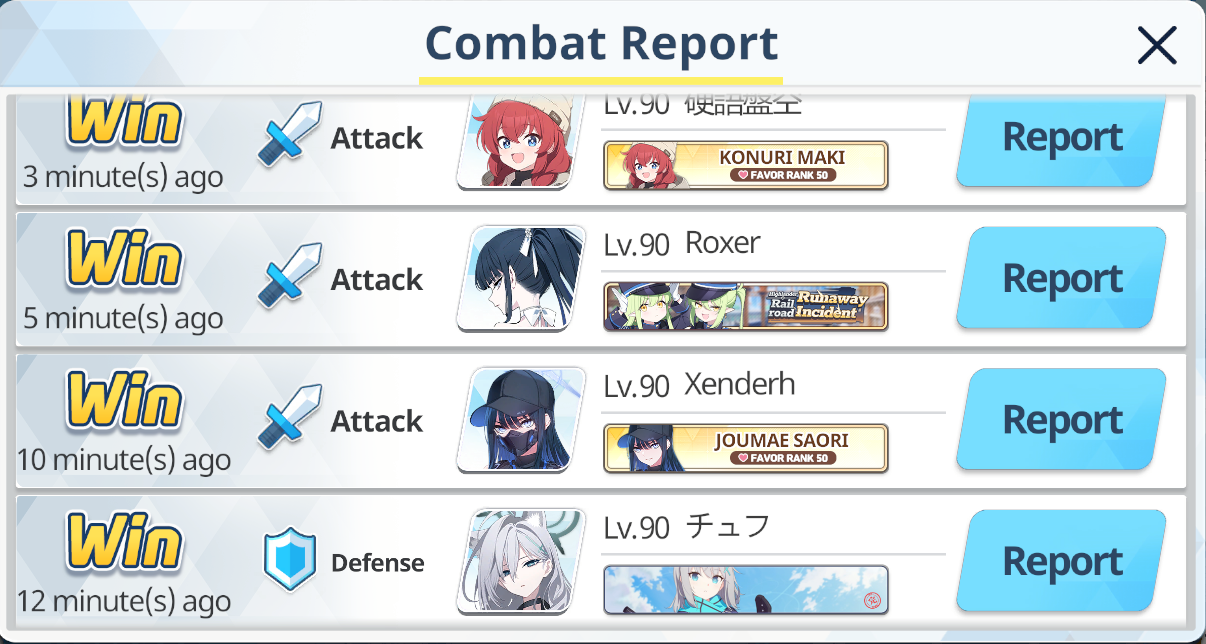 I don't know why everyone in the top ranks are all using the exact same defense. tsubaki, eimi, hanako, yuuka/miyako. It's really easy to beat that...but I'm just chilling in rank 2 all day since basically nobody ever attacks me here.