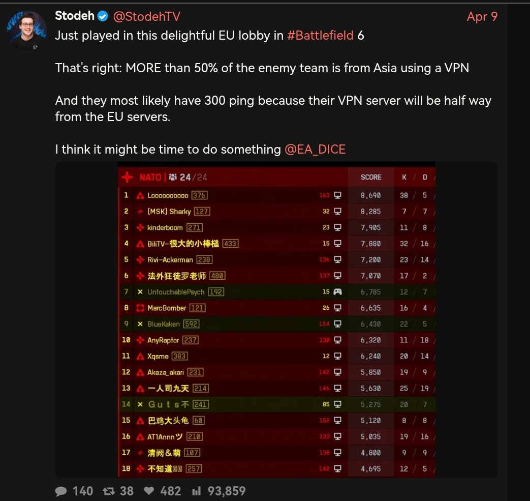 Container Ship EditionBattlefield 6 Intel:>Weapon Statshttps://docs.google.com/spreadsheets/u/0/d/1oHVJQPfkTGIjdqnuDhNrD16GETNQCWa0aofBQOtjg9w/htmlviewBattlefield News:>Latest Blog Posthttps://x.com/Battlefield/status/2044793931318038661>Latest Patch Noteshttps://x.com/i/status/2042618719923208379 >Updates to Portal Soon™https://www.pcgamer.com/games/fps/were-not-doing-a-good-enough-job-with-portal-right-now-battlefield-6-dev-says-players-are-making-fantastic-creations-that-nobody-is-seeing-because-of-a-technical-issue/>Battlefield 6 Portal XP Nerfedhttps://www.windowscentral.com/gaming/dice-nukes-battlefield-6-portal-xp>DICE Acknowledges Hit Registration Issueshttps://www.pcgamer.com/games/fps/its-not-just-you-hit-registration-is-bugged-in-battlefield-6-and-dice-is-working-on-it/>Cronus Zen Software Users Bannedhttps://www.gamesradar.com/games/battlefield/battlefield-6-fans-cheer-as-popular-cheat-maker-tells-users-to-pause-for-now-following-a-swift-banning-spree-from-ea-they-deserve-zero-second-chances/Previous thread:>>563304789