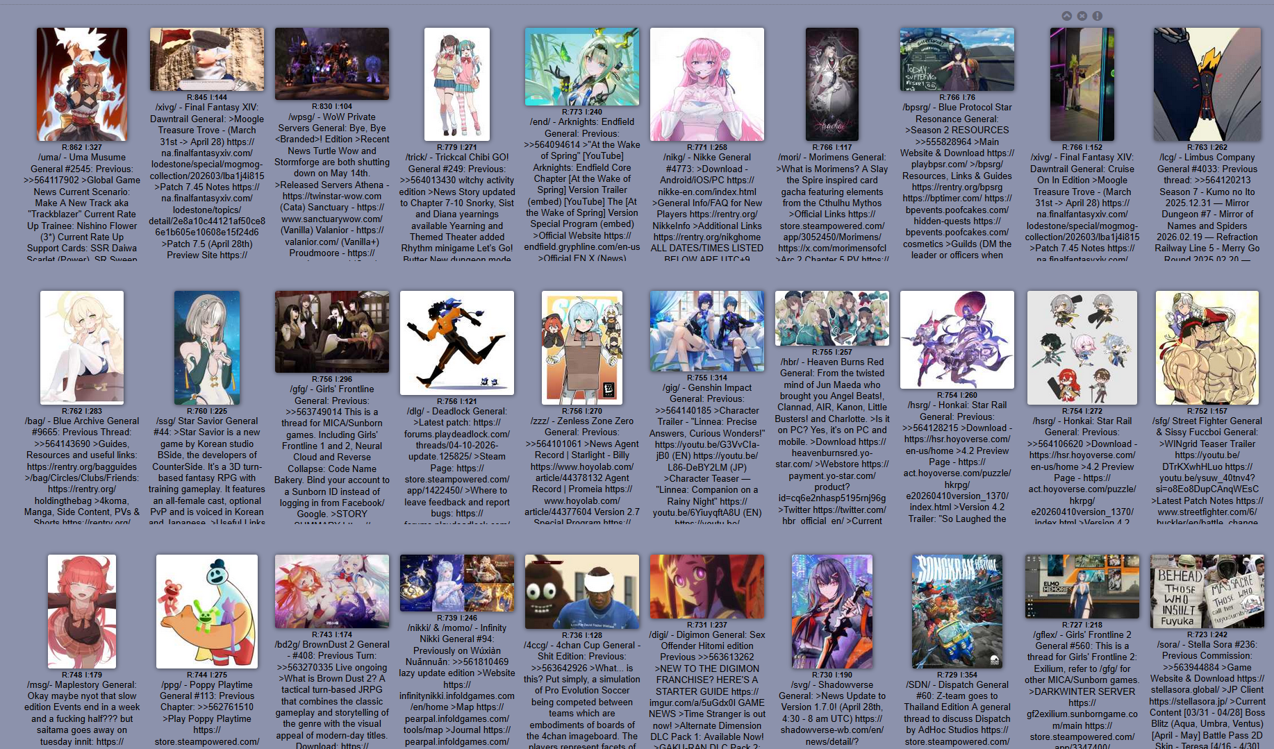 >>564181007nta, I don't care about muh anime site meme, but most generals are dead and plagued with trolls and avatarfags. Unless it's a live service game, or a new update/game/event happened.At least the one I've ever visited, I'm not claiming to have visited most generals either.