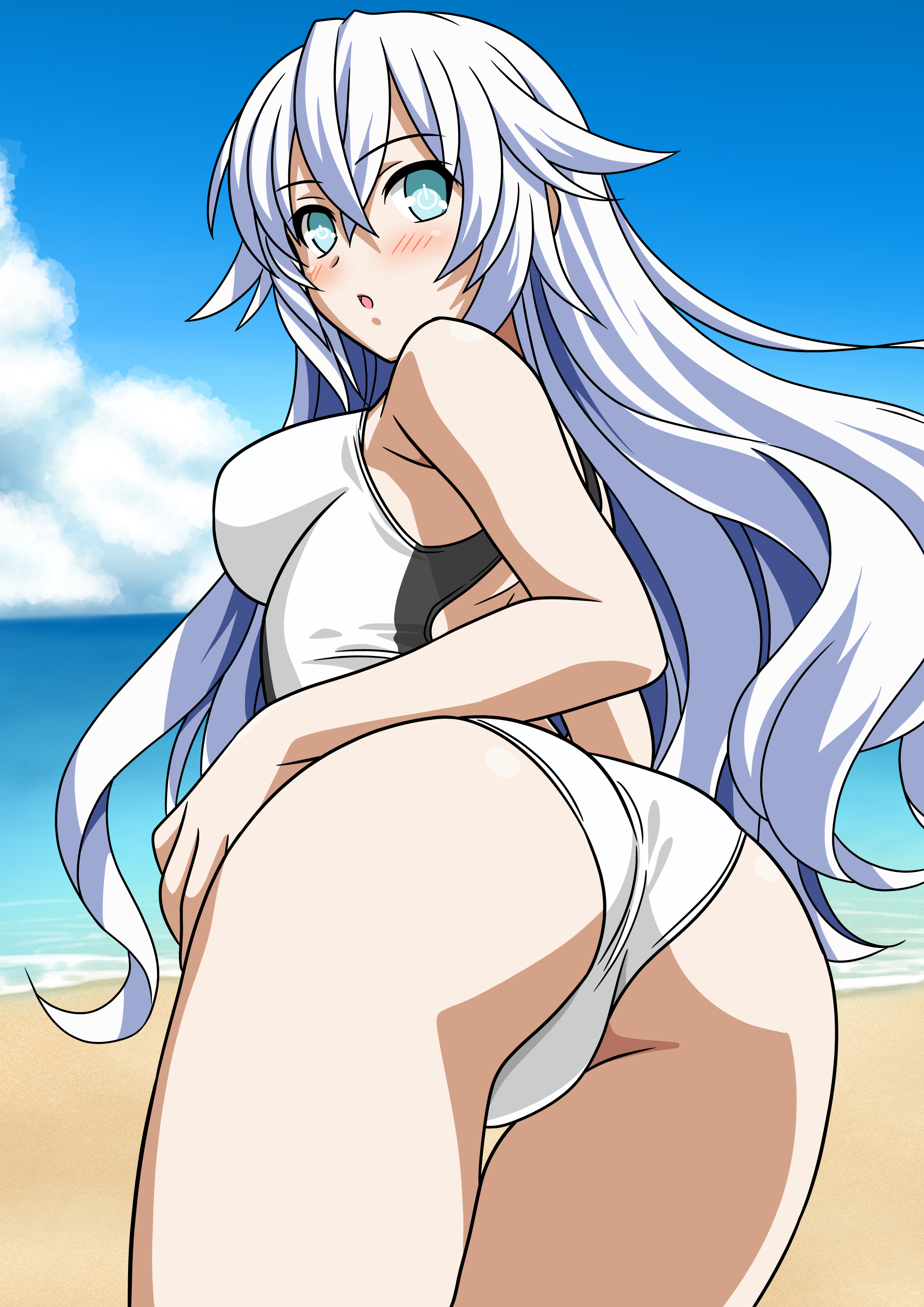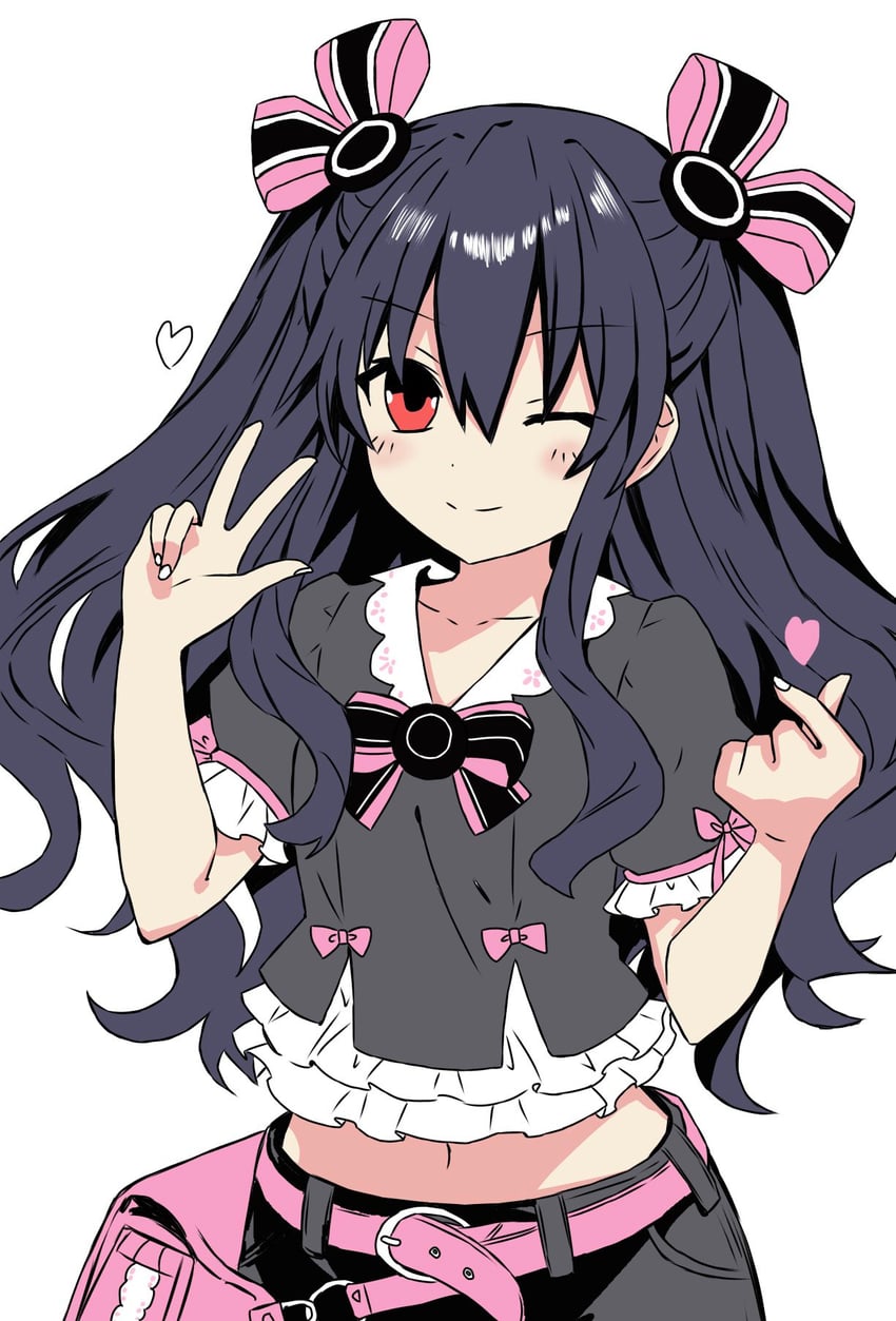 I LOVE BLACK HEART. I LOVE THE WAY SHE TALKS. I LOVE HER JAPANESE VOICE AND HER ENGLISH VOICE. I LOVE THE WAY SHE SAYS SHE HAS TO BE THE ONE DOING EVERYTHING. I LOVE HER REAL NAME WHICH IS NOIRE WHICH IS APPROPRIATE BECAUSE I ALWAYS FEEL NO IRE WHEN I HEAR HER. I LOVE THE WAY HER CLEARLY SOFT AND SILKY WHITE HAIR FLOWS. I LOVE THAT SHE'S 160 CM WHICH IS IMAGINE TIER BECAUSE I AM WAY TALLER THAN HER. I LOVE THAT SHE USES SWORDS BECAUSE IT IS MY FAVORITE WEAPON TO USE IN ROLE PLAYING GAMES. I LOVE THAT SHE CARRIES THE TEAM WITH GOOD ALL ROUND STATS. I LOVE THAT SHE TRUSTS ME ENOUGH TO HELP HER IN HER GAME WHEN SHE LOST ALL HER FRIENDS. HER SWORD IS REALLY NICELY DESIGNED IN HOW SIMPLE IT IS AND IT COMPLIMENTS HER NICE ELEGANT FIGURE. SHE HAS PERFECTLY SIZED HIPS AND BREASTS FOR HER FRAME. AS SHE WEIGHS 45KG SHE IS PRETTY LIGHT WHICH WOULD MAKE CARRYING HER TO A COMFORTABLE PLACE EASY WHEN SHE GETS TIRED FROM WORK. NOIRE GETS ALONG WELL WITH NEPTUNE WHICH IS NICE. I LOVE THAT SHE IS FRIENDS WITH BLANC AND VERT. I LOVE THAT SHE LIES ABOUT BEING OVERWORKED BECAUSE SHE DOESN'T WANT THE OTHERS TO WORRY ABOUT HER BUT WE ALL KNOW WE HAVE TO DO IT ANYWAY. I LOVE THE EAGERNESS SHE HAS WHEN DRAGGING ME AROUND TO SPEND THE DAY WITH HER. I LOVE THAT EVEN THOUGH SHE SAYS MEAN THINGS SHE CARES ABOUT HER FRIENDS.