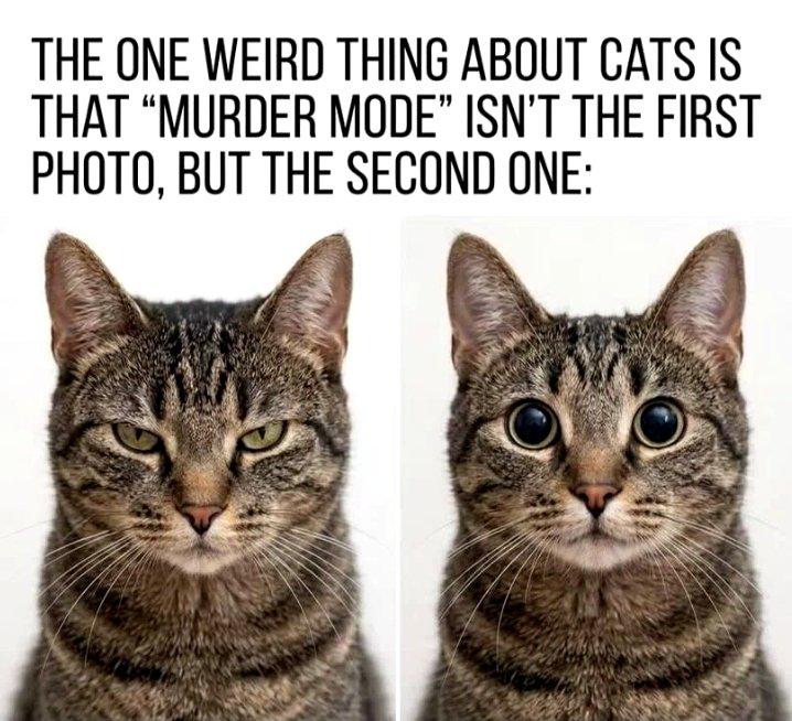 >>563990537So do mooncats>Round cat eyes (dilated, large pupils) in domestic cats signify low-light conditions, intense excitement, playfulness, or fear while vertical slits are common for hunting in daylight, round pupils maximize light intake for nocturnal vision and indicate high alertness, such as before pouncing.