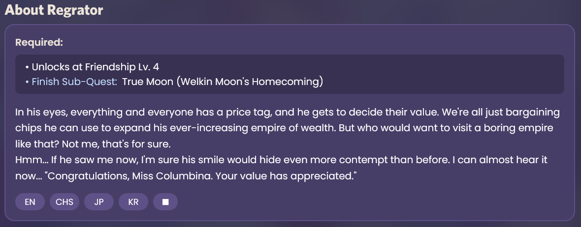>>564010128One interesting point to notice is that Vera's Melancholy is the book number 1 in the data and the author says this>you should know that Delphi is the center of Greek mythologyAnd Alice is connected to the Golden Apple Archipelago. The name referencing the Goddess Eris, which is mentioned in Delphi Pytho aka Enkanomiya. Alice also knows about Earth culture like he does. But alas, since some hroptatyrfags still cope he's VM's author, I won't act like I'm 100% certain about it. Even though it makes zero sense for Alice and Asmoday to care about a man from Khaenri'ah like Hroptatyr when Dain and Capitano are out and about in Teyvat.