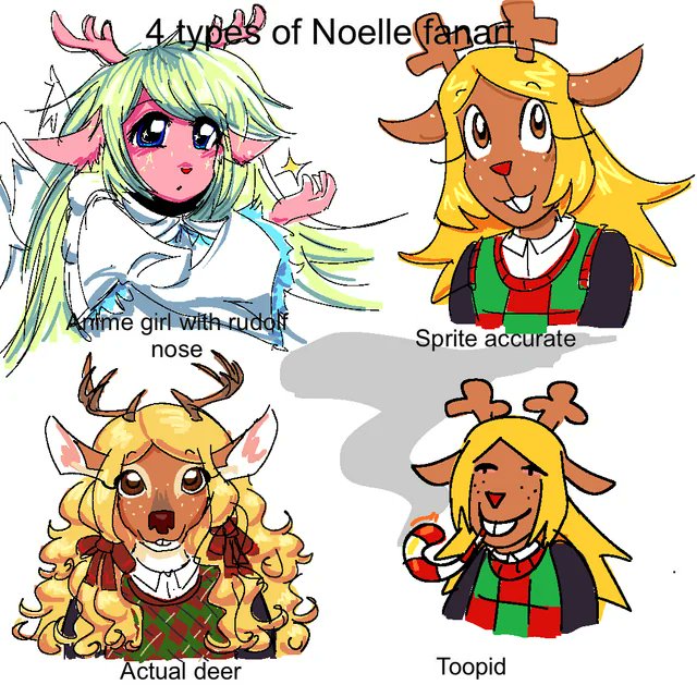 >>564049390Noelle having no personality makes her more relatable and easy to self insert into. Self inserters that are emotionally intelligent prefer Noelle because she is written as a player stand in. Low IQ players self insert as Kris because they're a human and the first character they see, but they end up ignoring Kris's strong personality traits and make up thwor own.Notice how Noellefags always draw Noelle accurately and in character, but Krisfags mischaracterize Kris entirely and put them in frilly dresses or adorn them with gaudy piercings?