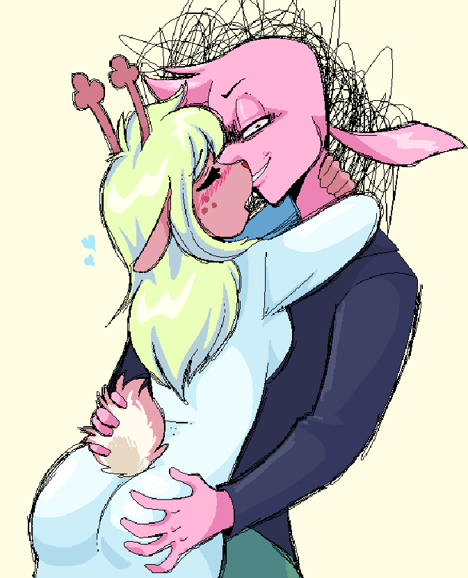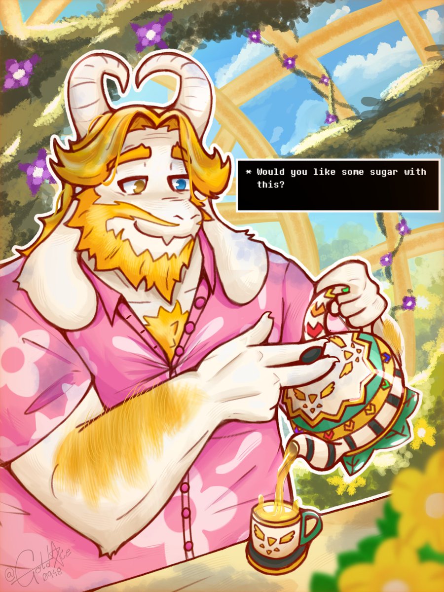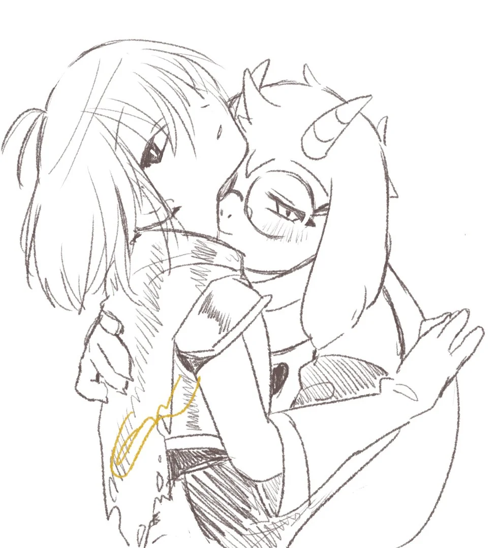 Within the standard couch/ottoman cuddling position with Asgore as we play a new video game he seems really interested in with me operating the controller and his hands holding them from the outside to guide my movements (we hadn't gotten the monster-sized controller for him yet), and as we enter the character customization screen I suddenly get the idea to replicate his sexy face to the best of my ability as his confused looks change into feeble protest about "being vain by playing as himself" from his chin perch on my shoulder (after playing around as him for about an hour I give a little blissful sigh that "the main character of this game is such a hunk", and a second of confusion at my out-of-the-blue profession of attraction later I'm able to detect an unmistakable shade of pink pervade his cheeks within my periphery). Making out with Asgore in bed while exchanging giggles after disabling our alarm clocks, and as I mention with great reluctance that we should probably start getting ready for work soon he suddenly pulls me back into another defiant string of kisses in what is for him a rare display of wanton friskiness winning out over responsibility (feeling such a need within him to steal more seconds with me was like a shock to my heart, so much so that when he finally regained purchase on reason I was the one greedily clinging to every last brush of his lips). Just happening to be cleaning the house and having completed all other areas as I descend into the basement to see Asgore working out in his home gym area (definitely not planned of course), and after confirming he's okay with me tidying up I get to work wiping down a small table as he curls a massive dumbbell nearby (eventually he finds the heart to tell me it's okay if I just want to watch him work out and that I don't have to mask it by pretending to wipe a table for ten minutes, and though I'm quite embarrassed he instantly makes it better by offering a freshly-tightened bicep to touch it I want)
