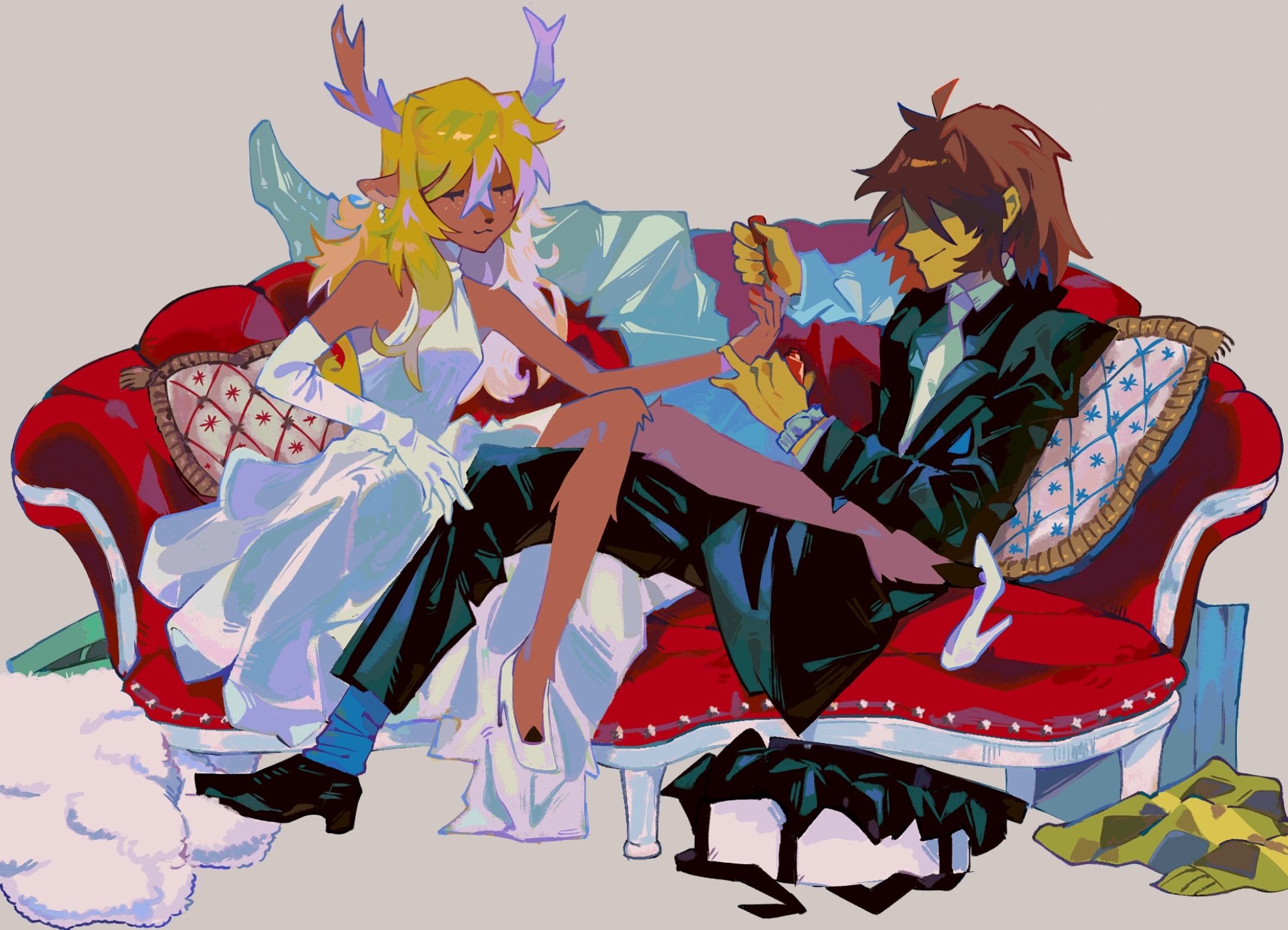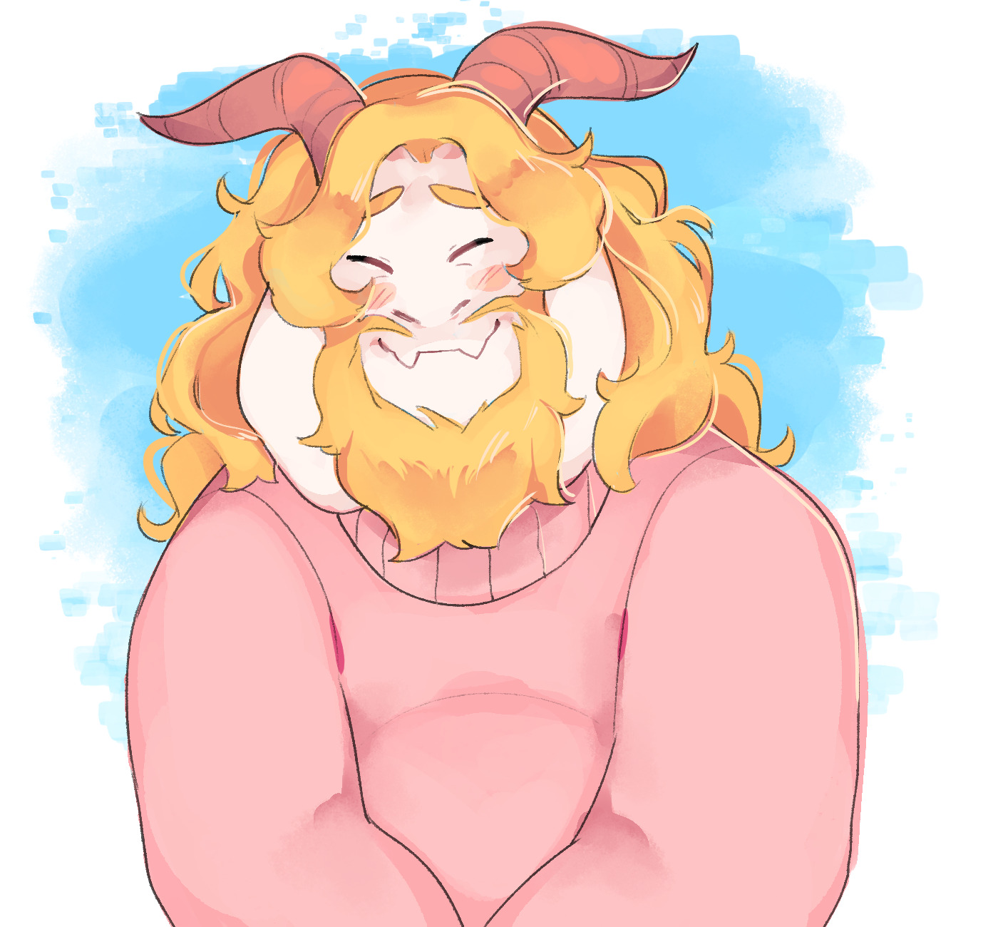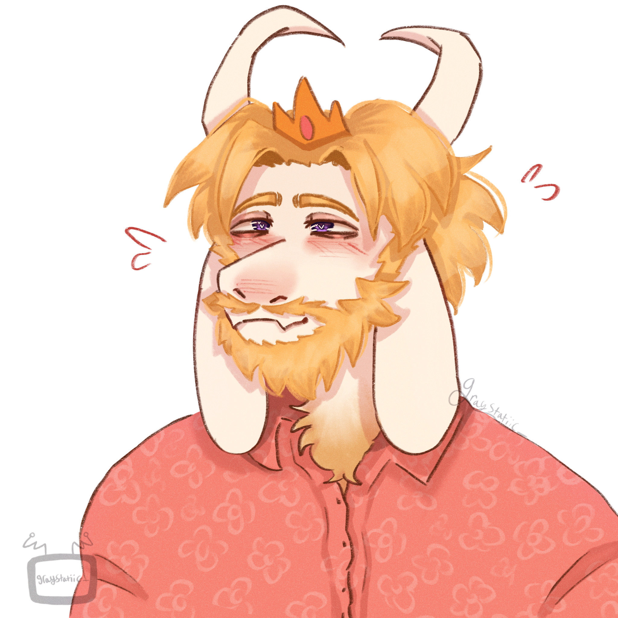 Within the standard couch/ottoman cuddling position with Asgore as we play a new video game he seems really interested in with me operating the controller and his hands holding them from the outside to guide my movements (we hadn't gotten the monster-sized controller for him yet), and as we enter the character customization screen I suddenly get the idea to replicate his sexy face to the best of my ability as his confused looks change into feeble protest about "being vain by playing as himself" from his chin perch on my shoulder (after playing around as him for about an hour I give a little blissful sigh that "the main character of this game is such a hunk", and a second of confusion at my out-of-the-blue profession of attraction later I'm able to detect an unmistakable shade of pink pervade his cheeks within my periphery). Making out with Asgore in bed while exchanging giggles after disabling our alarm clocks, and as I mention with great reluctance that we should probably start getting ready for work soon he suddenly pulls me back into another defiant string of kisses in what is for him a rare display of wanton friskiness winning out over responsibility (feeling such a need within him to steal more seconds with me was like a shock to my heart, so much so that when he finally regained purchase on reason I was the one greedily clinging to every last brush of his lips). Just happening to be cleaning the house and having completed all other areas as I descend into the basement to see Asgore working out in his home gym area (definitely not planned of course), and after confirming he's okay with me tidying up I get to work wiping down a small table as he curls a massive dumbbell nearby (eventually he finds the heart to tell me it's okay if I just want to watch him work out and that I don't have to mask it by pretending to wipe a table for ten minutes, and though I'm quite embarrassed he instantly makes it better by offering a freshly-tightened bicep to touch it I want)